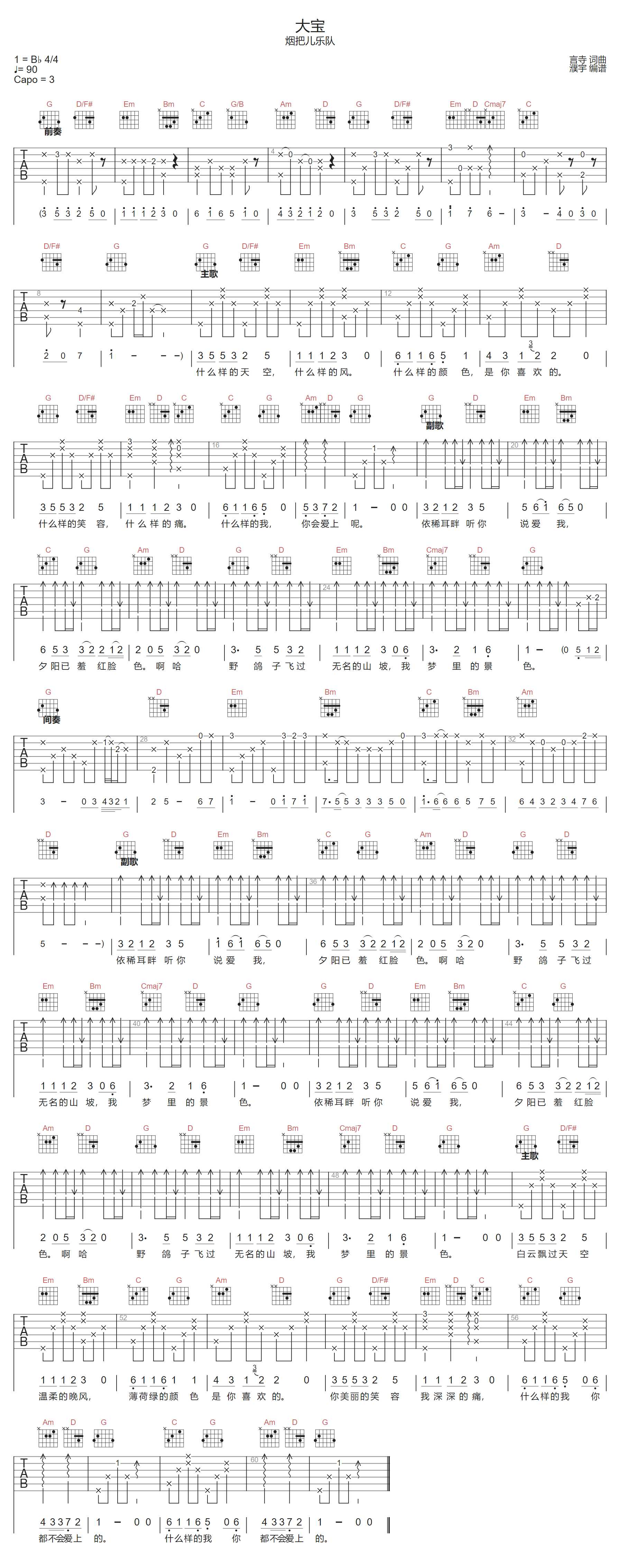 大宝吉他谱 - 烟把儿乐队 - G调吉他弹唱谱 - 原版