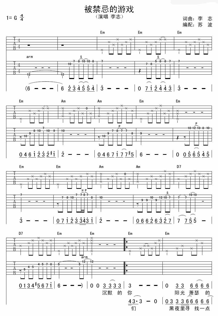 被禁忌的游戏吉他谱 - 李志 - G调吉他弹唱谱 - 原版