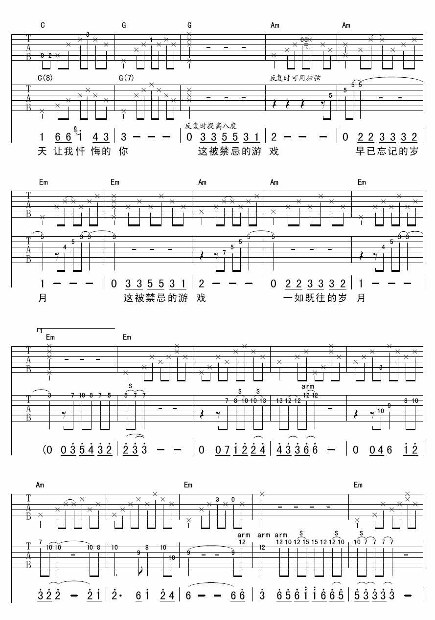 当前位置:琴谱网>吉他弹唱>被禁忌的游戏