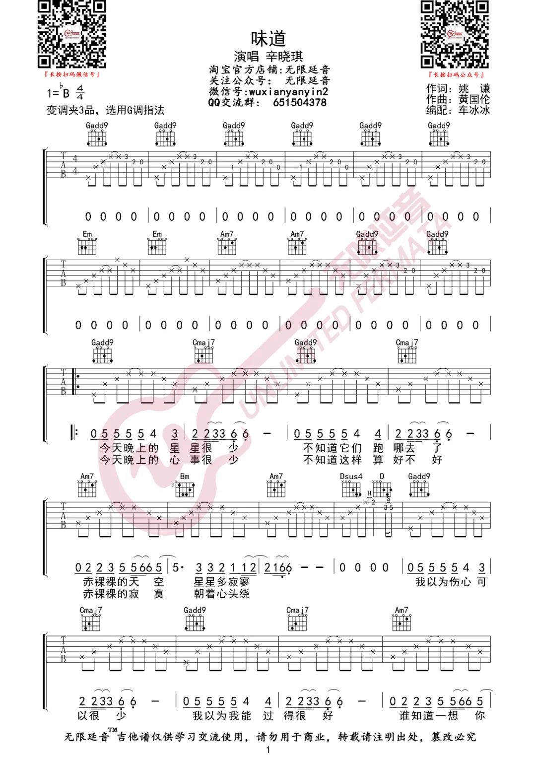 曲谱介绍: 辛晓琪演唱的一首歌曲,4/4拍的节奏,这首歌曲的原调为降B调,这里曲谱采用了G调指法进行编配,演唱时夹变调夹3品可回到原调,也可根据个人实际嗓音情况选择。曲谱由琴谱网更新上传,来源于@无限延音编配出品。辛晓琪的歌淋漓尽致地诠释世间百态的爱情,总能把情歌唱得直抵人心,让听歌的男人女人一次又一次得以灵魂共鸣。