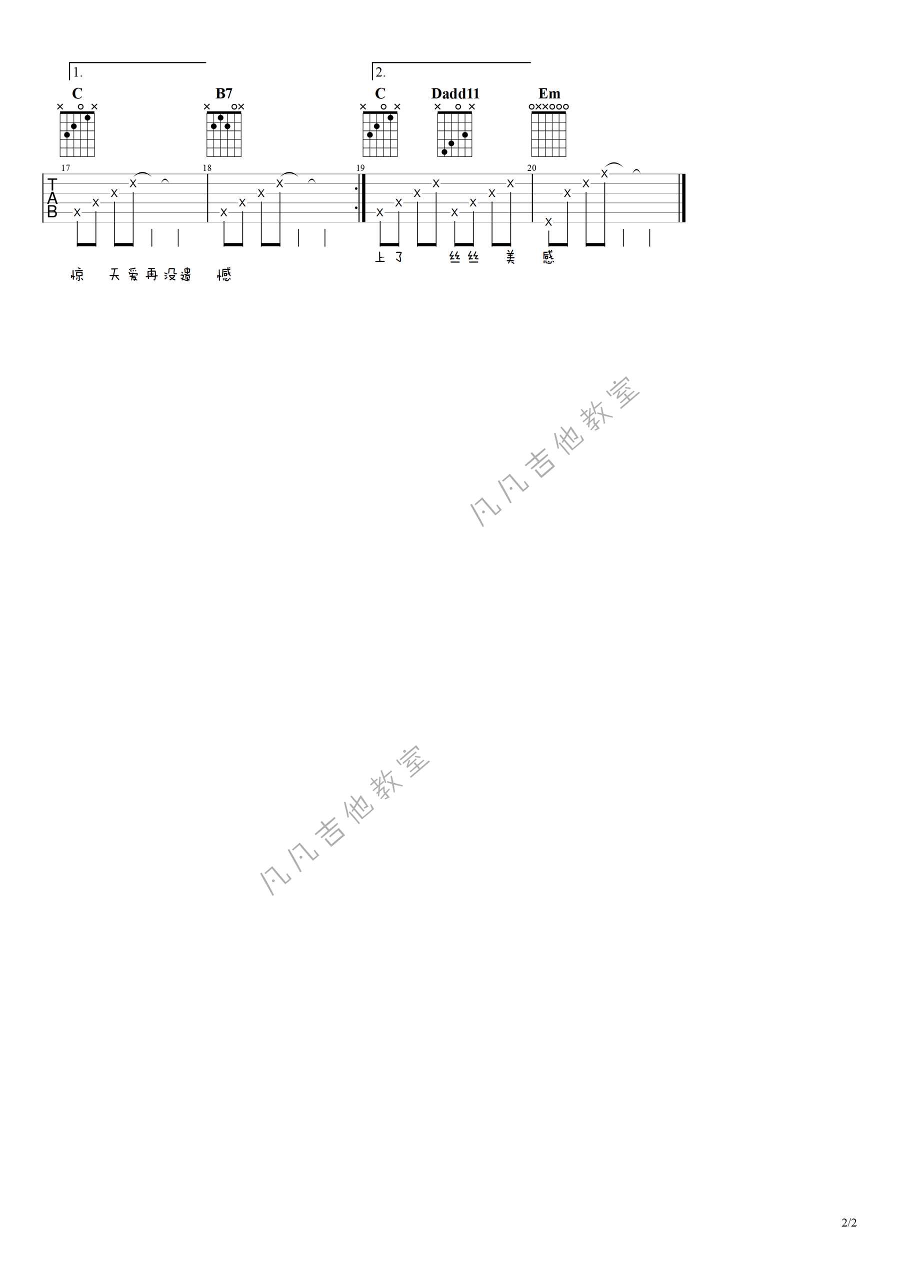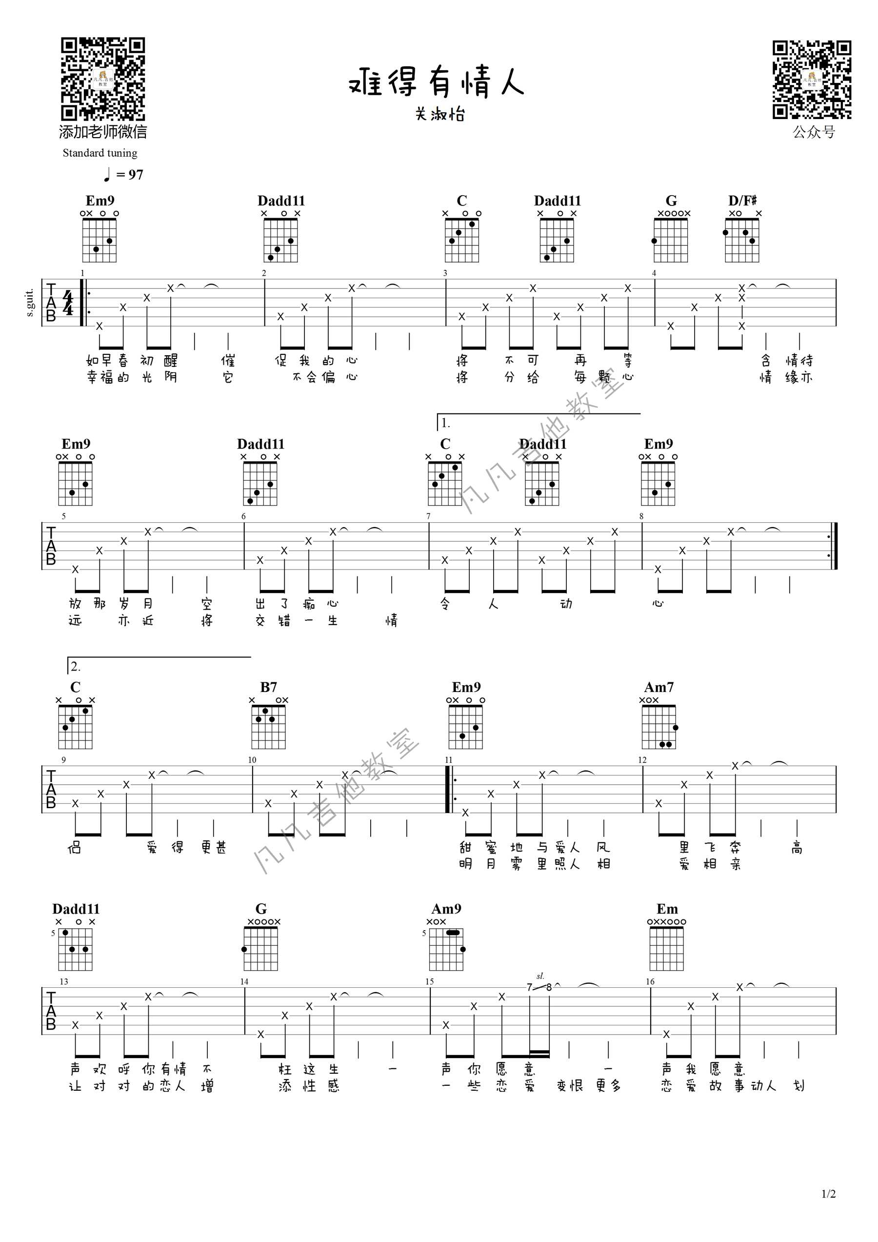 曲谱介绍: 关淑怡演唱的一首歌曲,4/4拍的节奏,这首歌曲的原调为G调,这里曲谱采用了G调指法进行编配,演唱时可不夹变调夹,曲谱由琴谱网更新上传,来源于@凡凡吉他教室编配出品。这首歌是TVB电视剧《新婚蜜语》的主题曲,这是一首轻快温暖的浪漫情歌,虽然歌曲商业味道颇重,但在关淑怡甜蜜的歌声互相晖映下成为了关淑怡成名的经典回响金曲之一。  吉他弹唱演示及视频教学