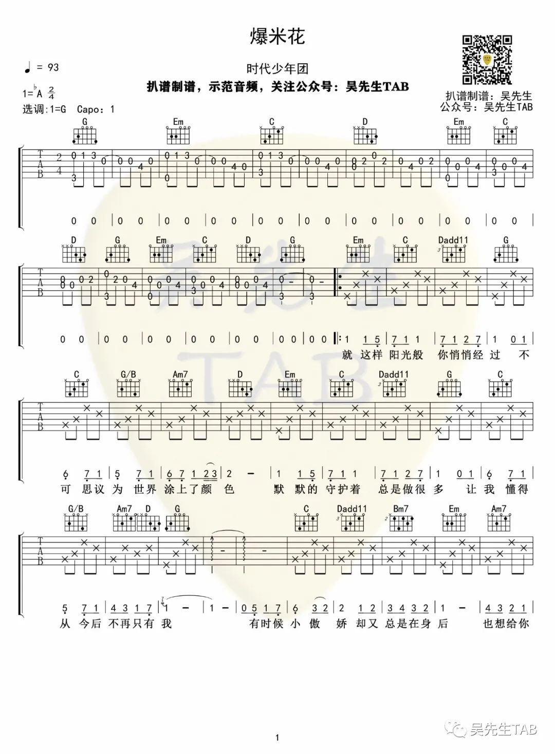 爆米花吉他谱 - 时代少年团 - G调吉他弹唱谱 - 原版