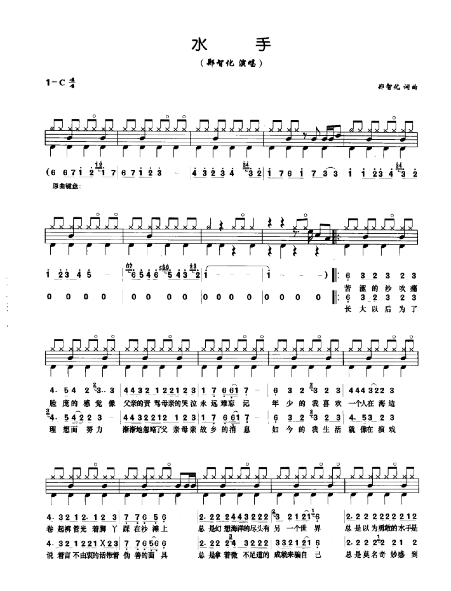 水手鼓谱 - 郑智化 - 架子鼓谱