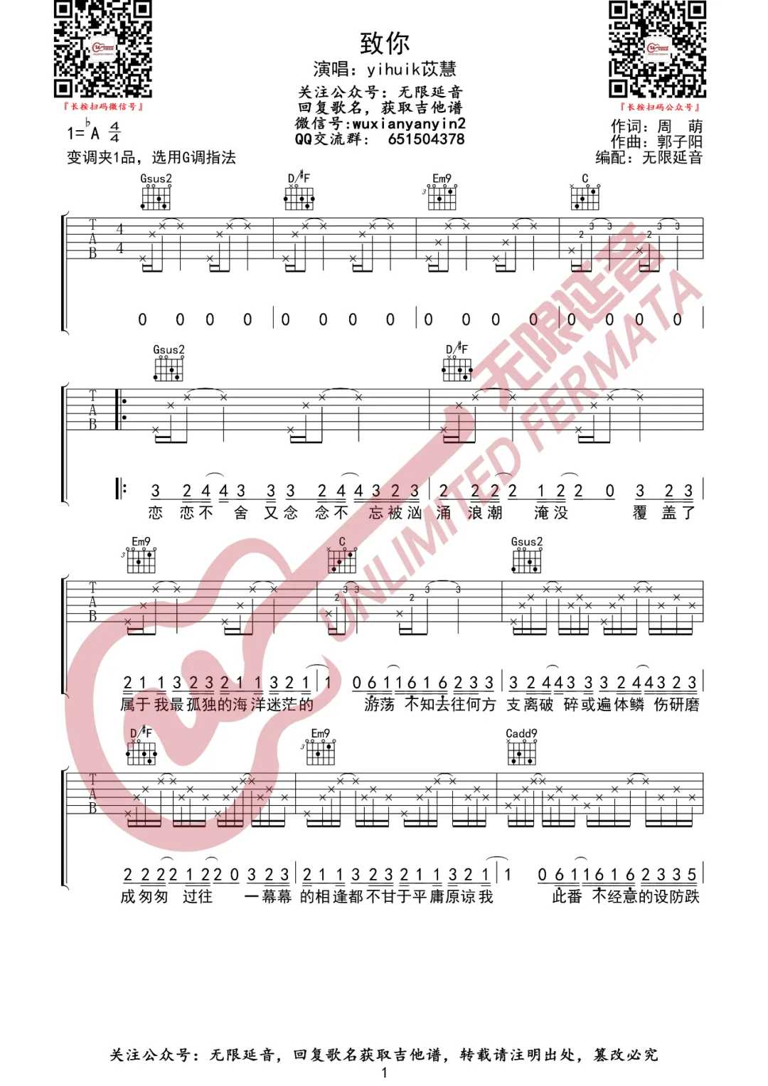 曲谱介绍: yihuik苡慧演唱的一首歌曲,4/4拍的节奏,这首歌曲的原调为降A调,这里曲谱采用了G调指法进行编配,演唱时夹变调夹1品可回到原调,也可根据个人实际嗓音情况选择。曲谱由琴谱网更新上传,来源于@无限延音编配出品。听这首歌就仿佛就看见了自己,恋恋不舍又念念不忘,被汹涌浪潮淹没,覆盖了属于我,最孤独的海洋,迷茫的游荡,不知去往何方,支离破碎。