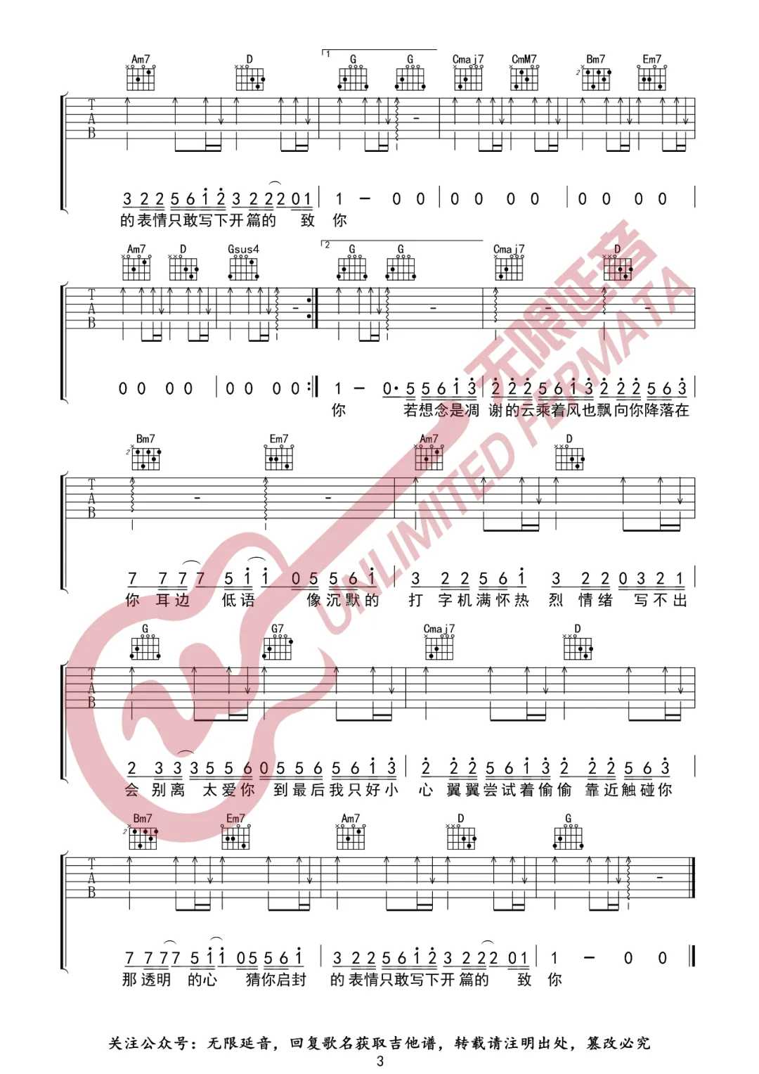 当前位置:琴谱网>吉他弹唱>致你