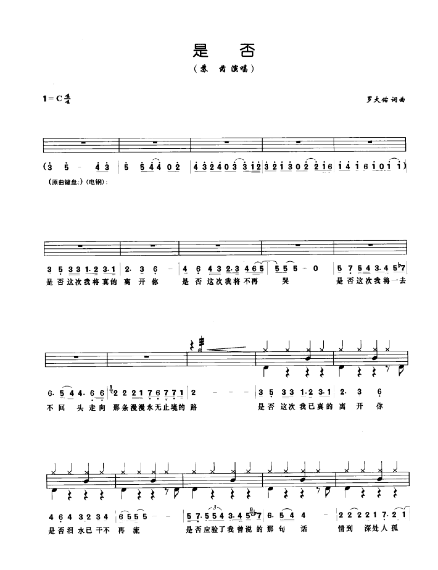 是否鼓谱 - 苏芮 - 架子鼓谱