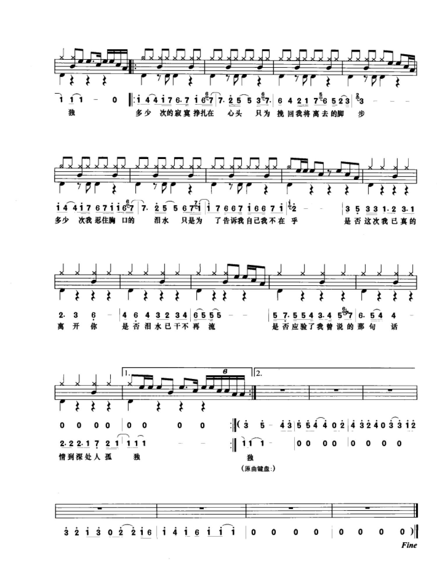 曲谱介绍: 是否(架子鼓谱)-苏芮