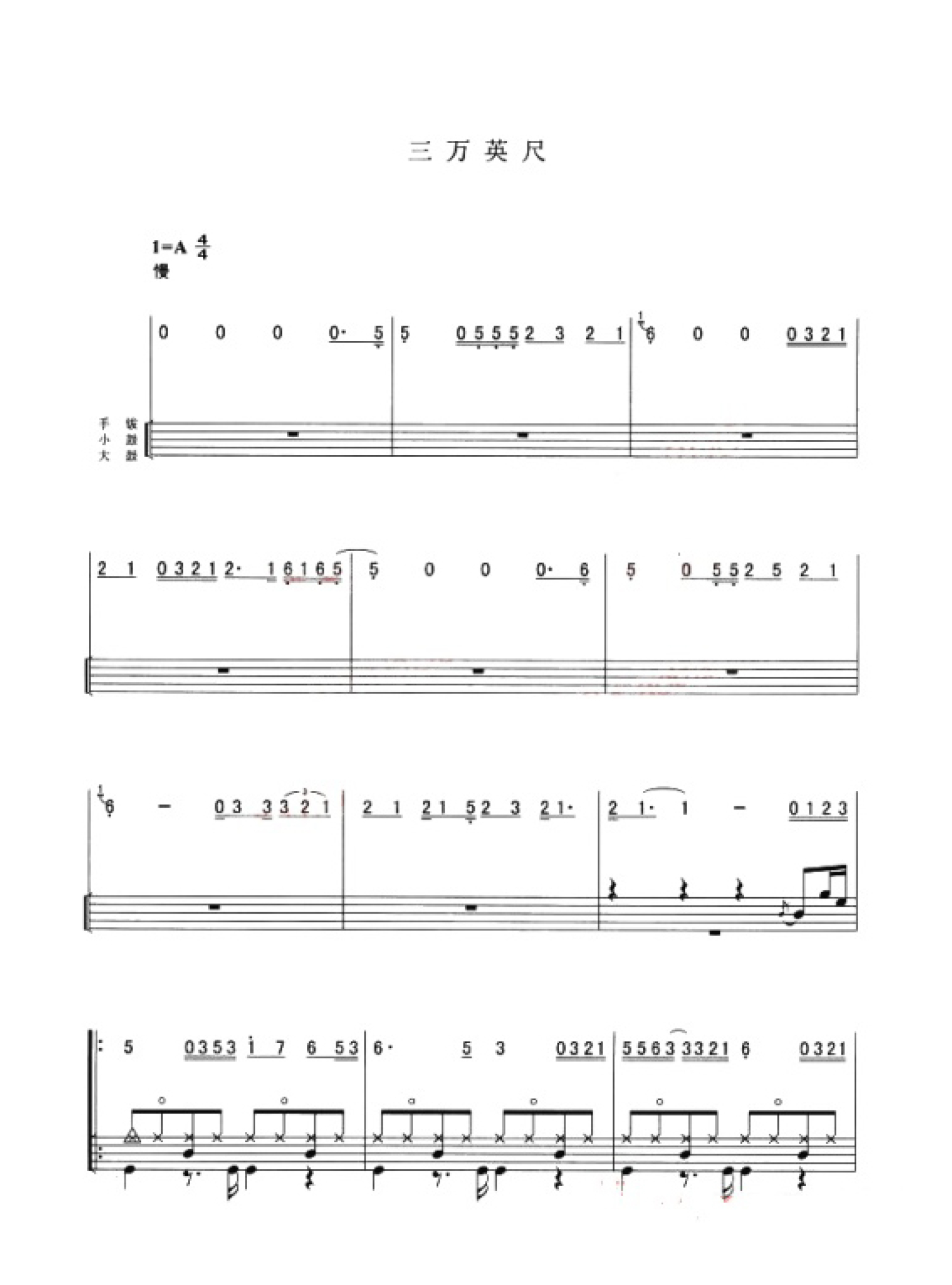 曲谱介绍: 三万英尺(架子鼓谱)