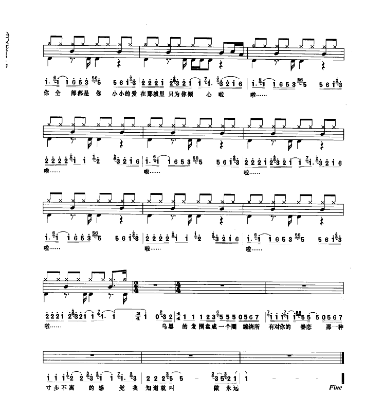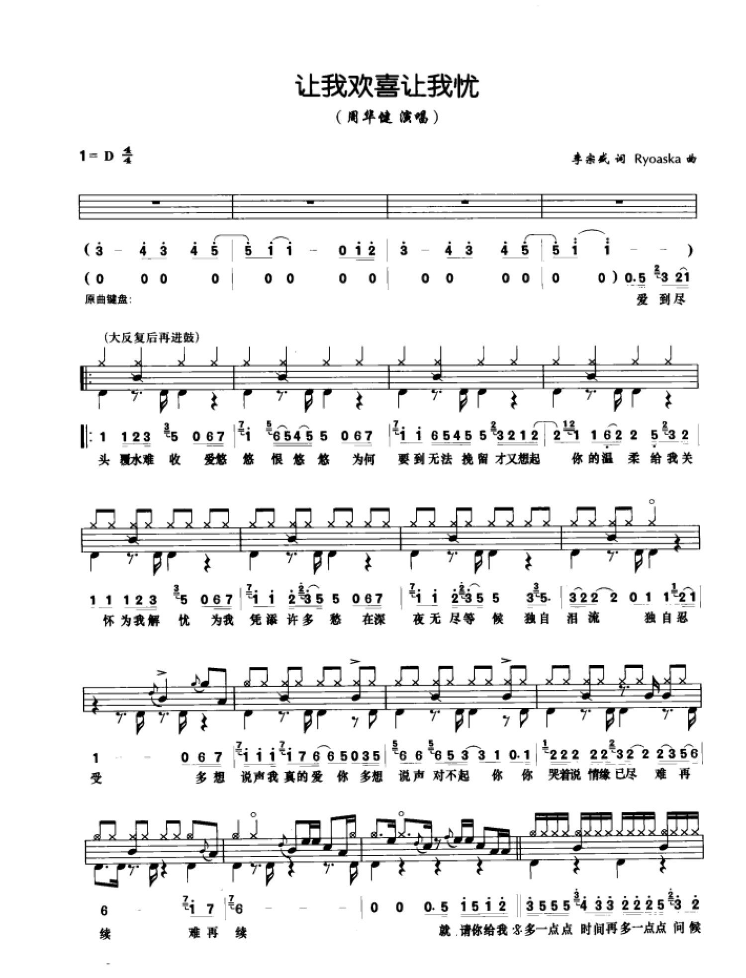 曲谱介绍: 让我欢喜让我忧(架子鼓谱)-周华健
