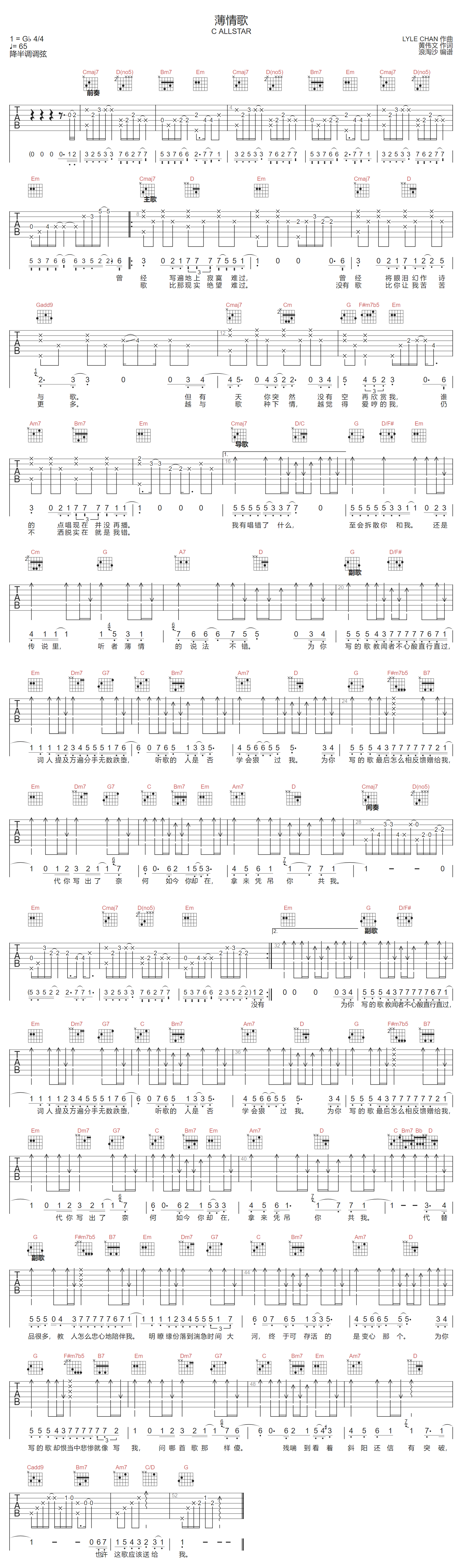 薄情歌吉他谱 - C - G调吉他弹唱谱 - 原版