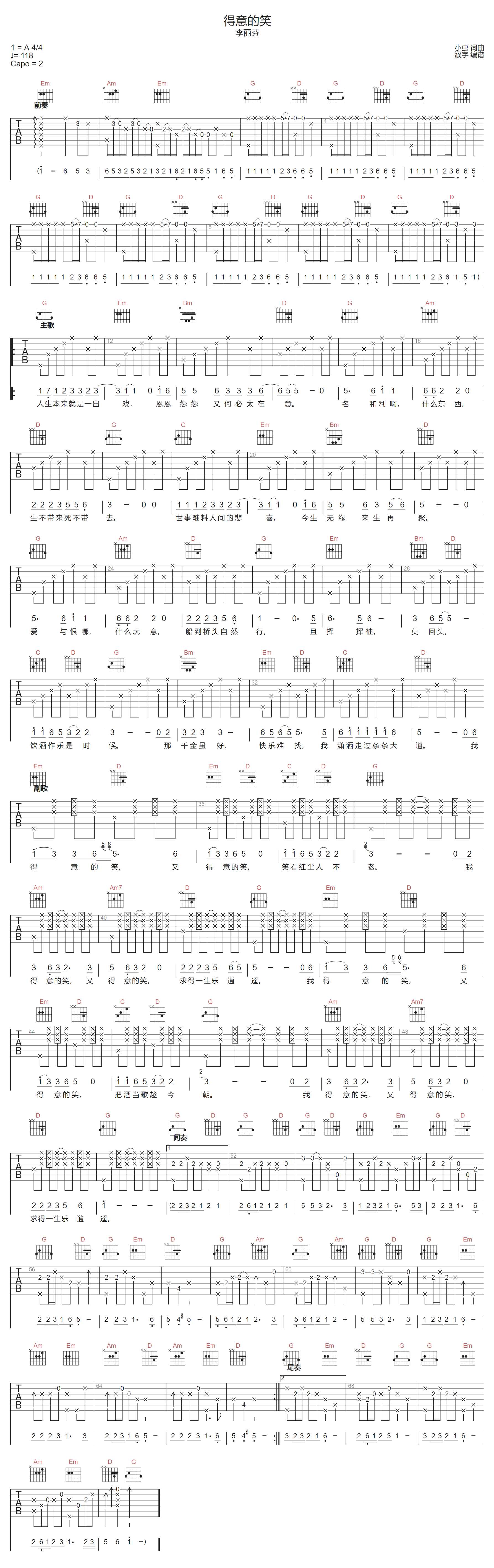 当前位置:琴谱网>吉他弹唱>得意的笑