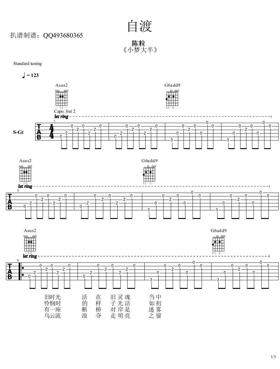琴谱网为您精心推荐 自渡 高清图谱