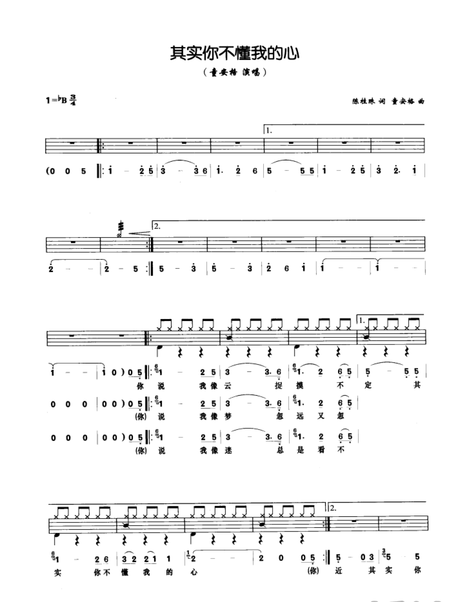 其实你不懂我的心鼓谱 - 童安格 - 架子鼓谱
