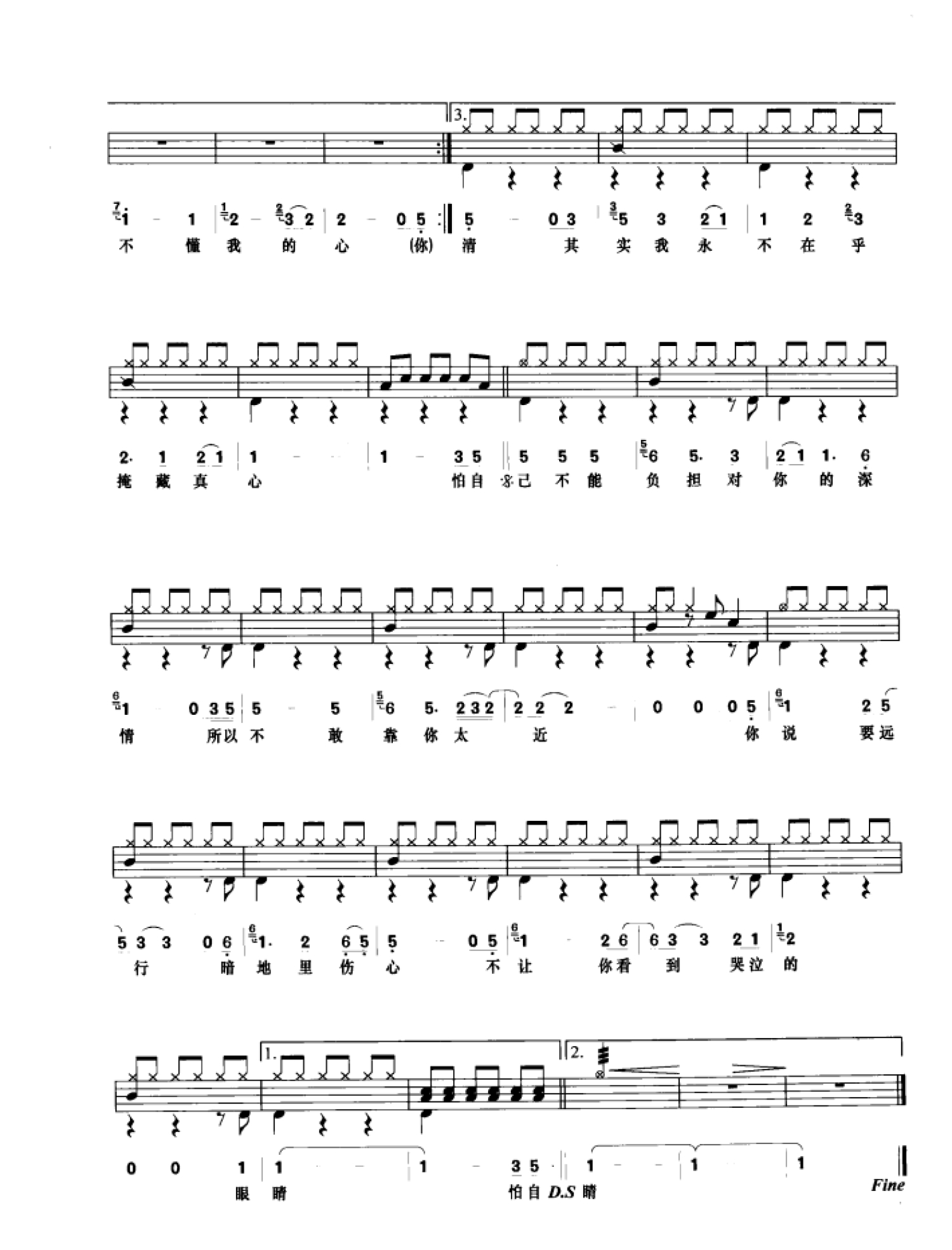 曲谱介绍: 其实你不懂我的心(架子鼓谱)-童安格
