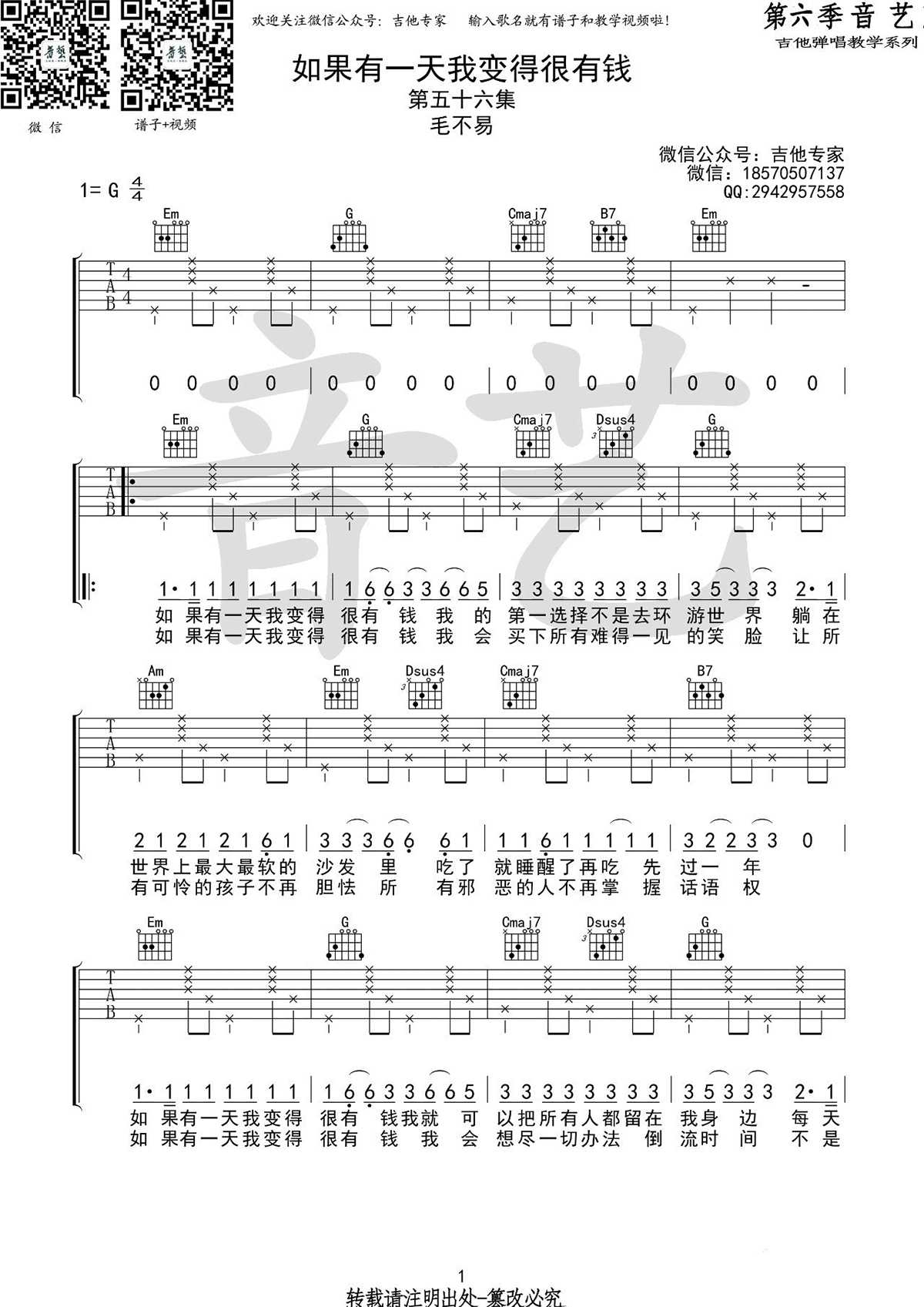如果有一天我变得很有钱吉他谱 - 毛不易 - G调吉他弹唱谱