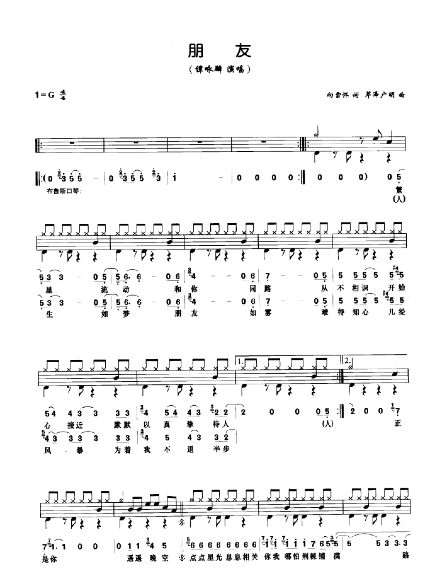 曲谱介绍: 朋友(架子鼓谱)-谭咏麟