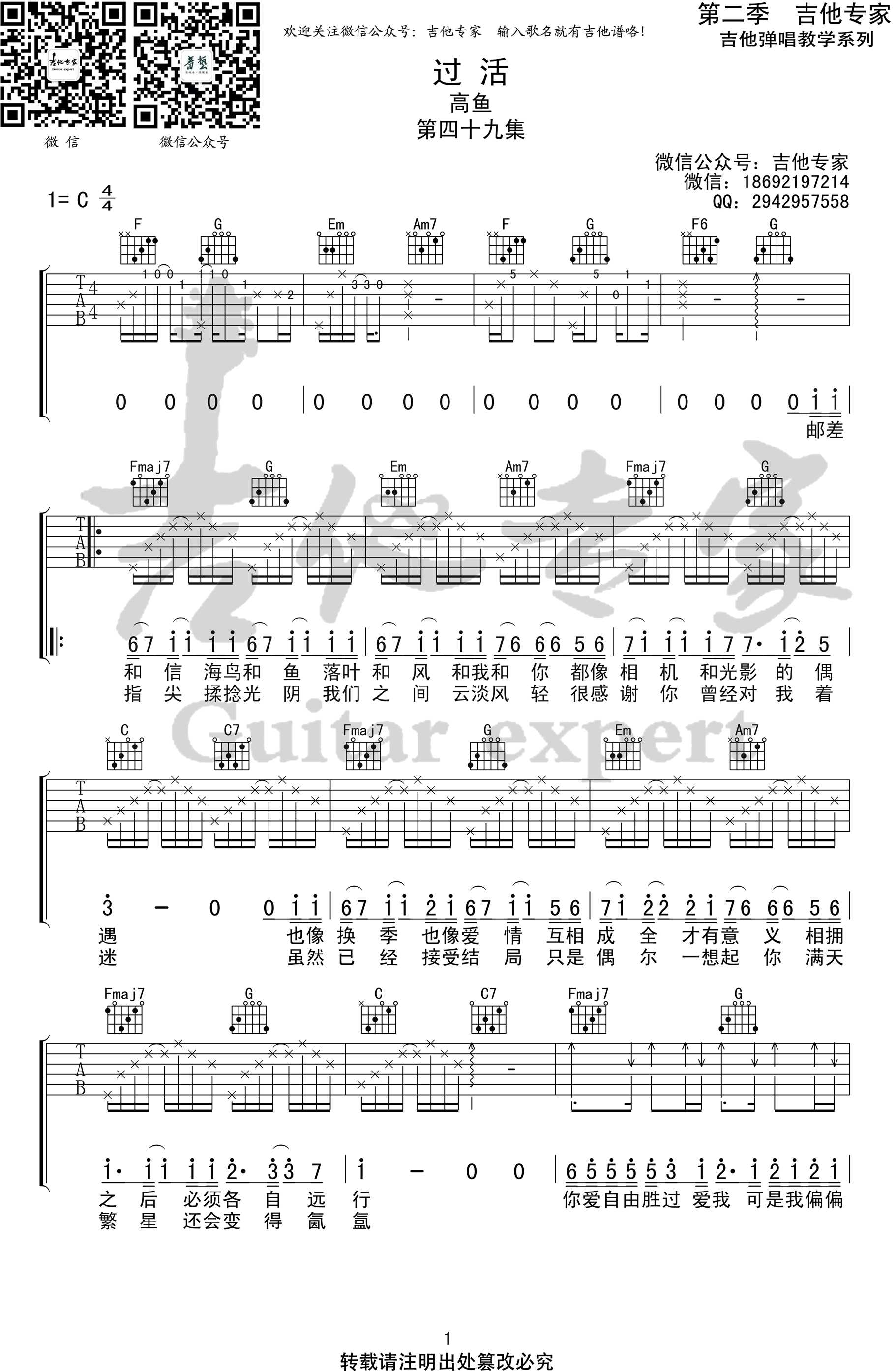 过活吉他谱 - 高鱼 - C调吉他弹唱谱 - 原版