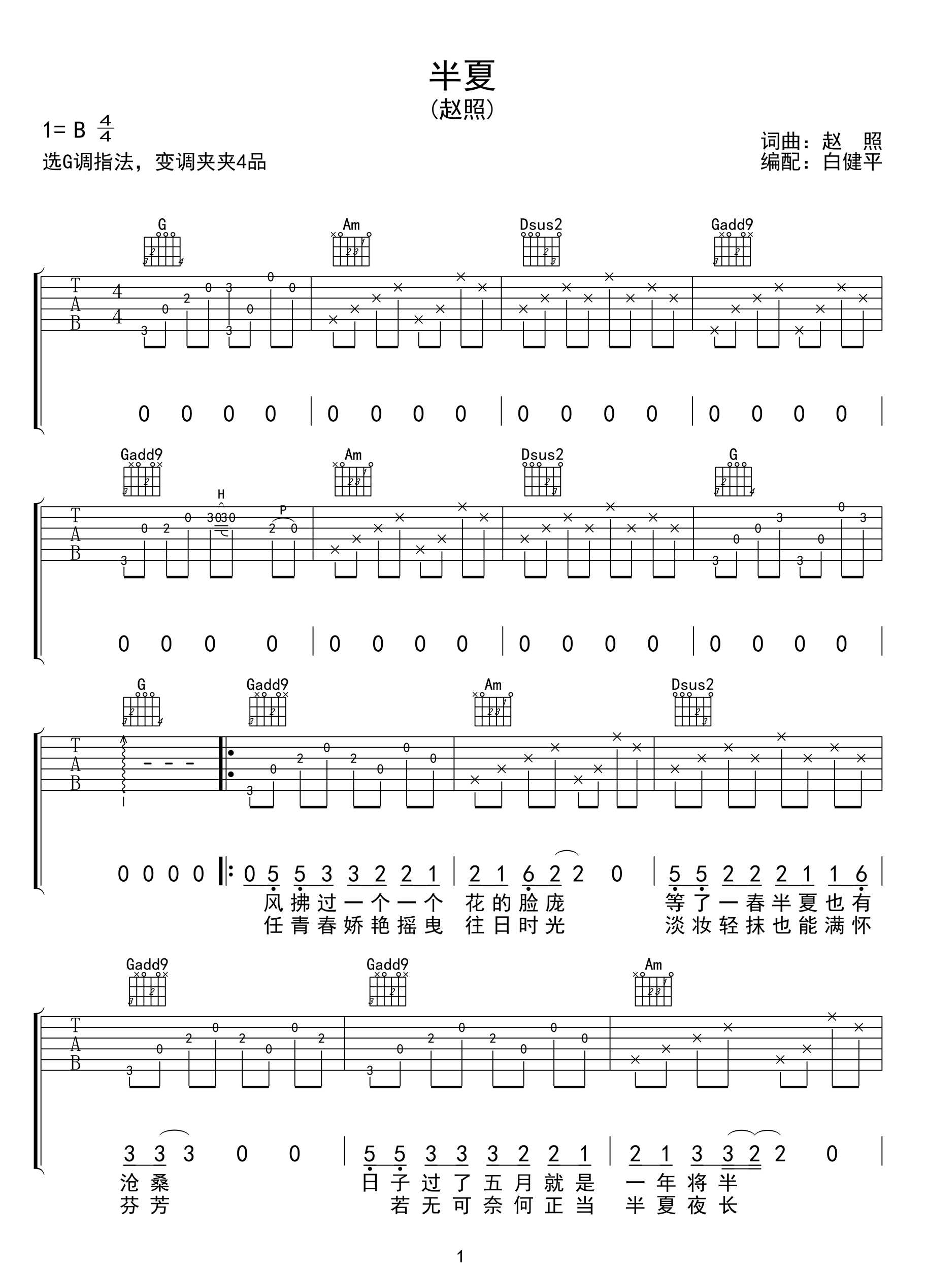 半夏吉他谱 - 赵照 - G调吉他弹唱谱 - 原版