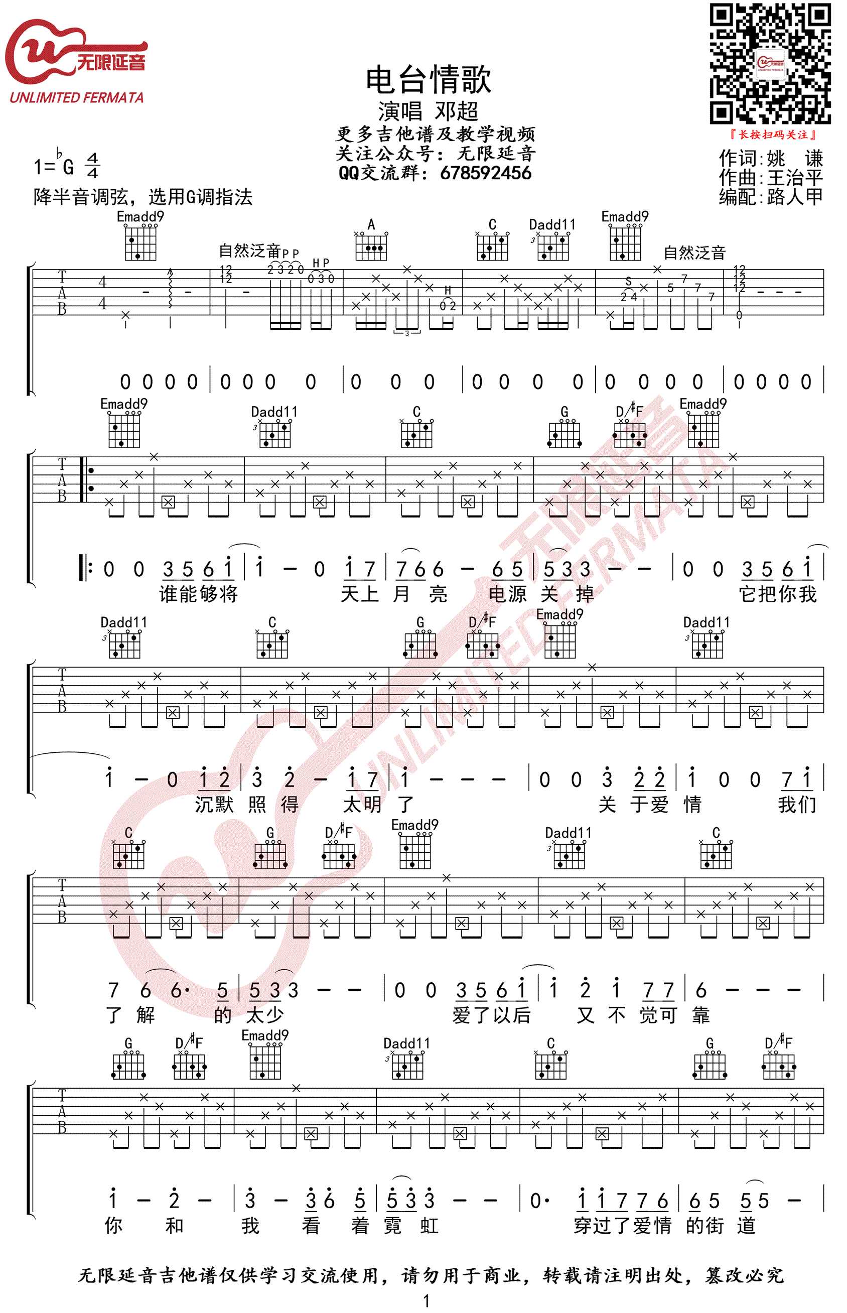 电台情歌吉他谱 - 邓超 - G调吉他弹唱谱 - 原版