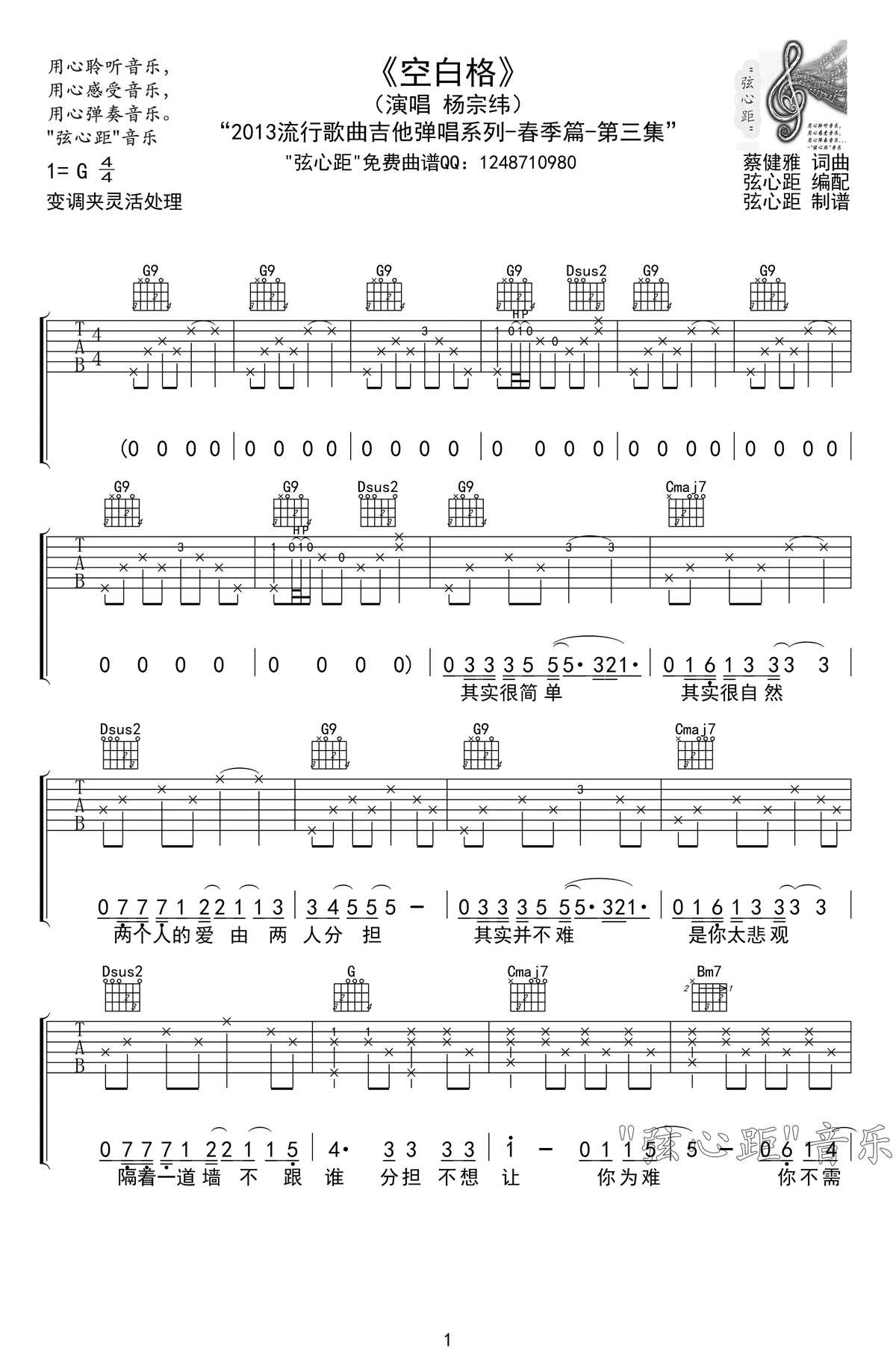 空白格吉他谱 - 杨宗纬 - G调吉他弹唱谱 - 原版