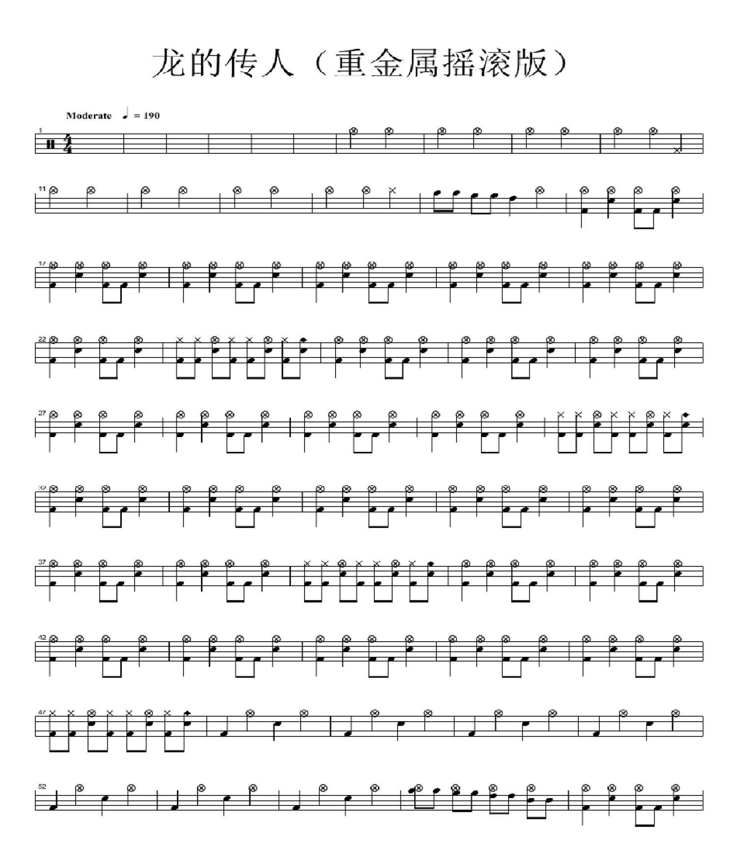 曲谱介绍: 龙的传人(重金属摇滚版架子鼓谱)