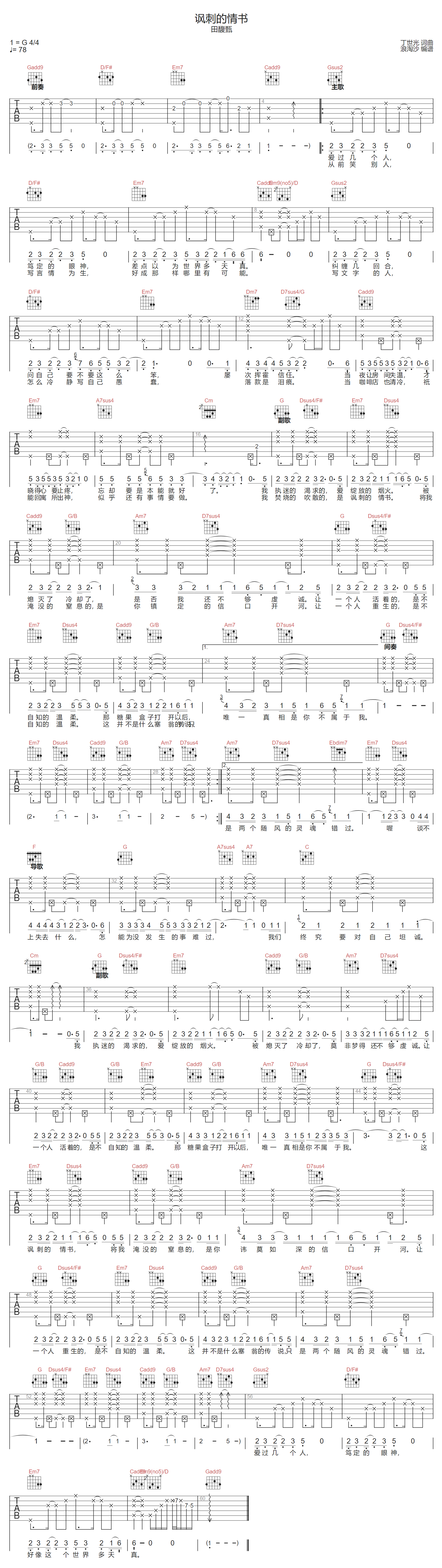 讽刺的情书吉他谱 - 田馥甄 - G调吉他弹唱谱 - 原版