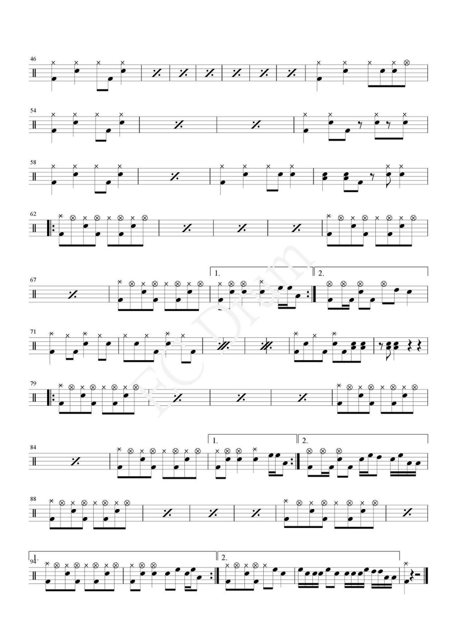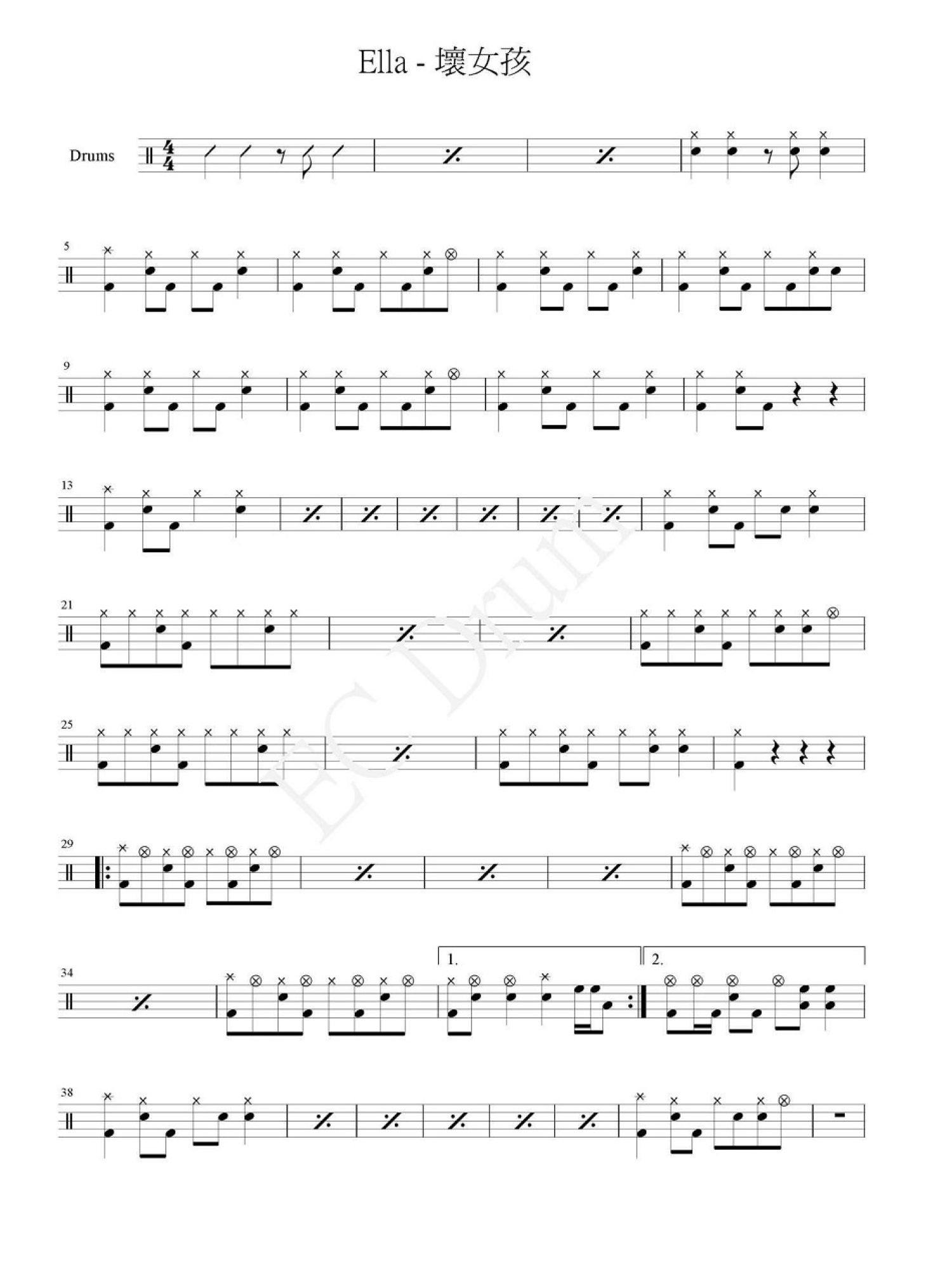 曲谱介绍: 坏女孩(架子鼓谱)