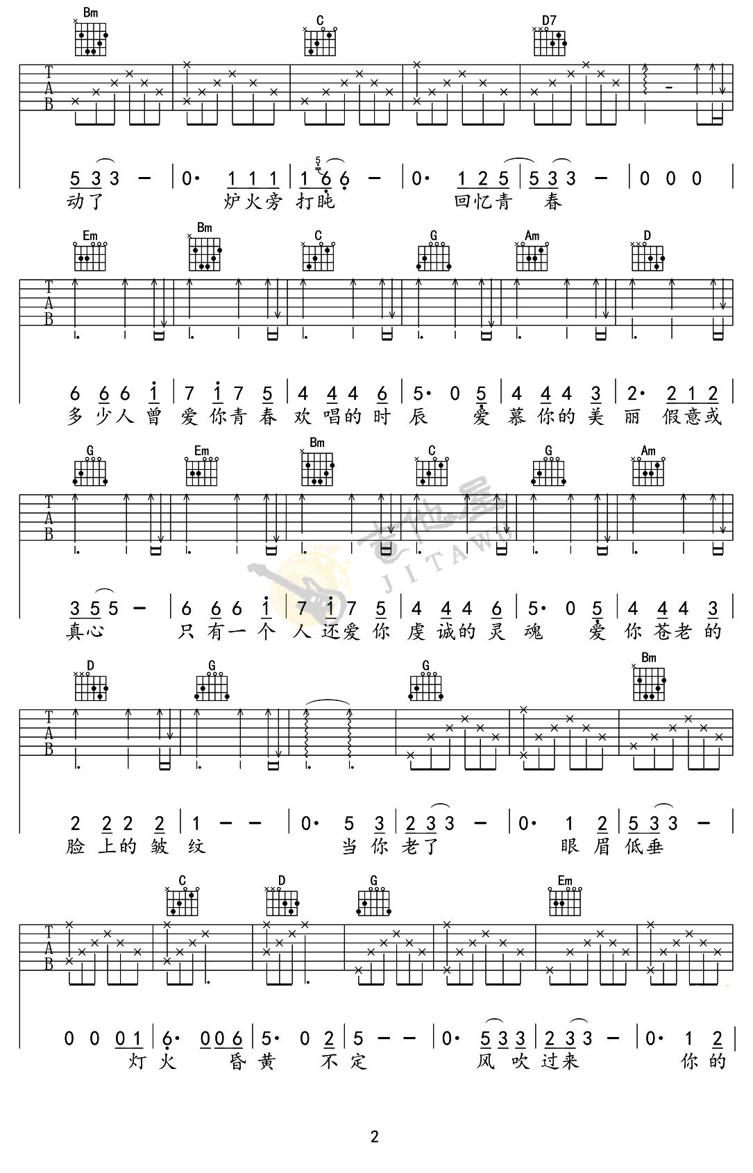 当前位置:琴谱网>吉他弹唱>当你老了