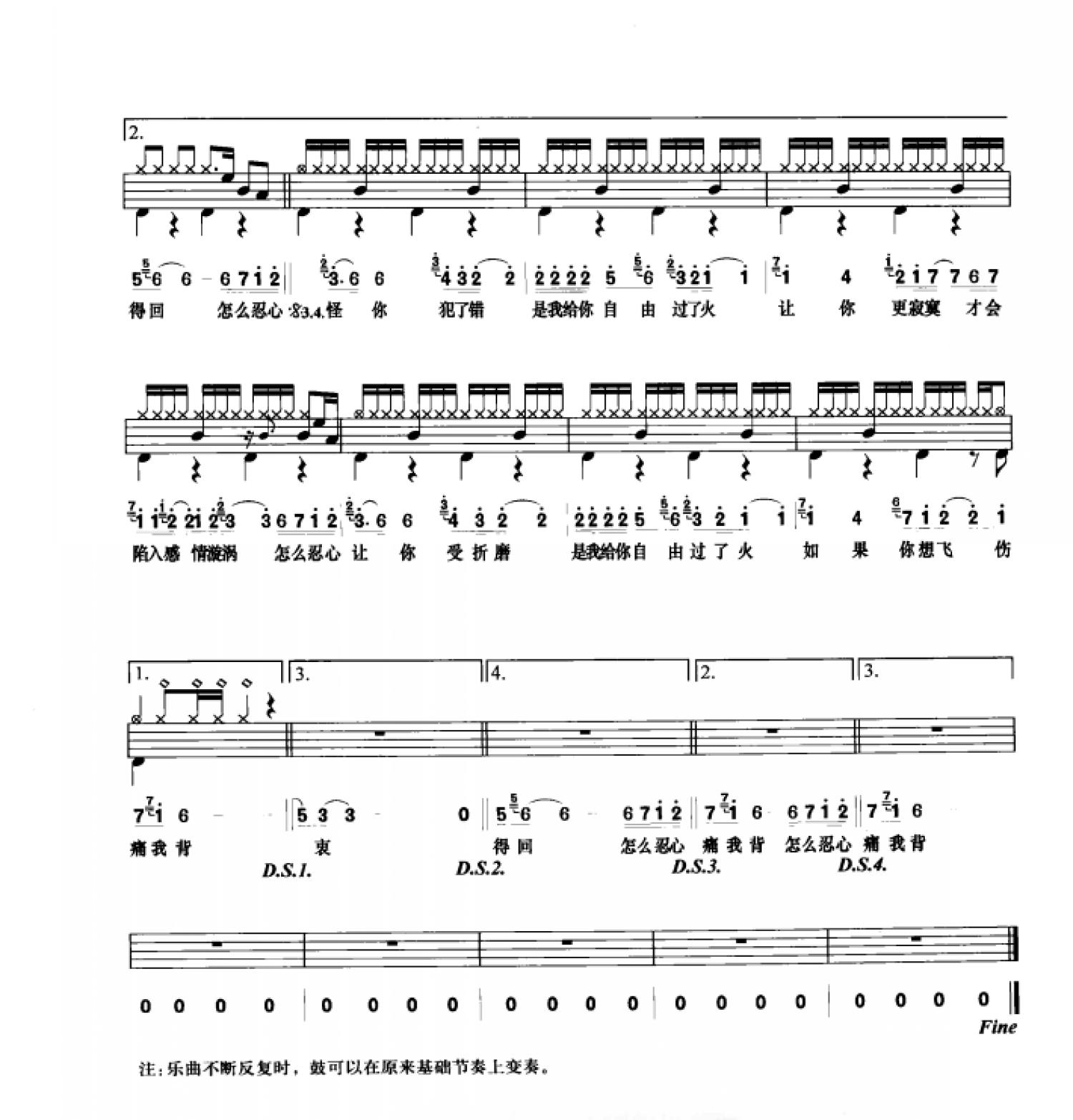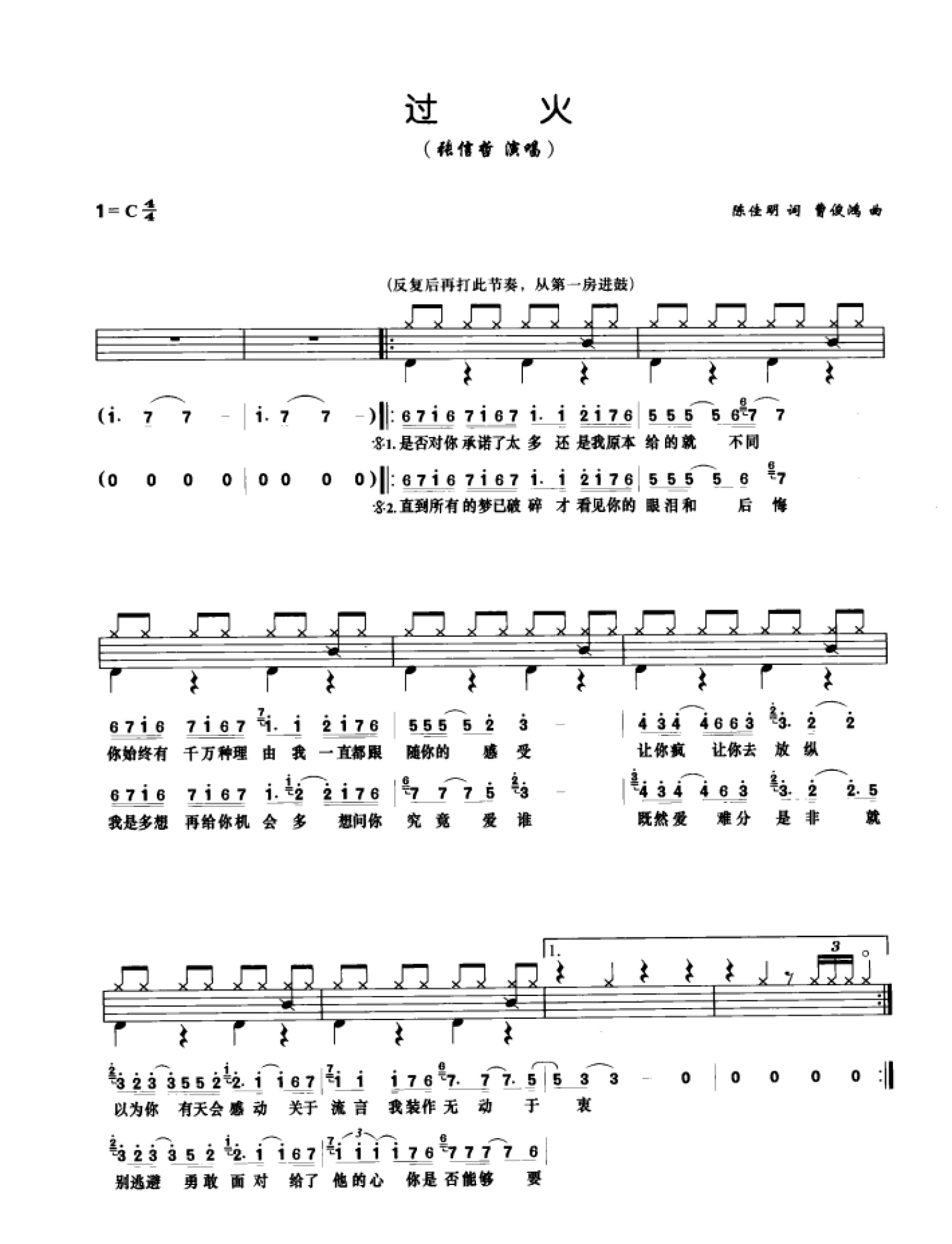 过火鼓谱 - 张信哲 - 架子鼓谱