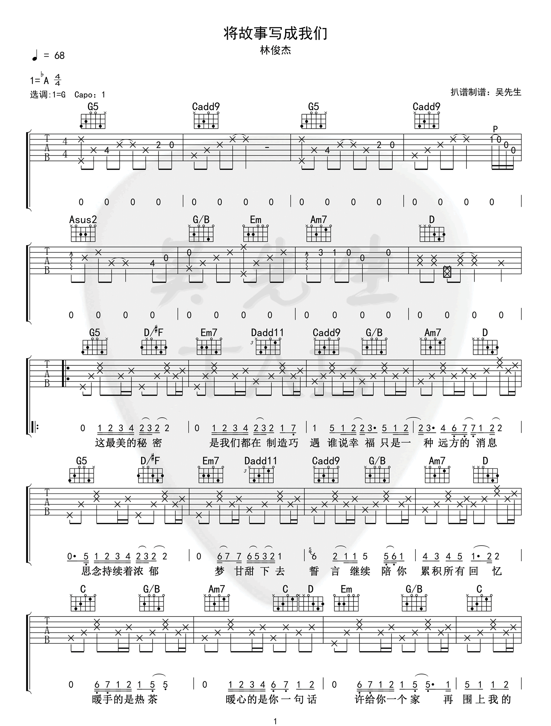 将故事写成我们吉他谱 - 林俊杰 - G调吉他弹唱谱 - 原版