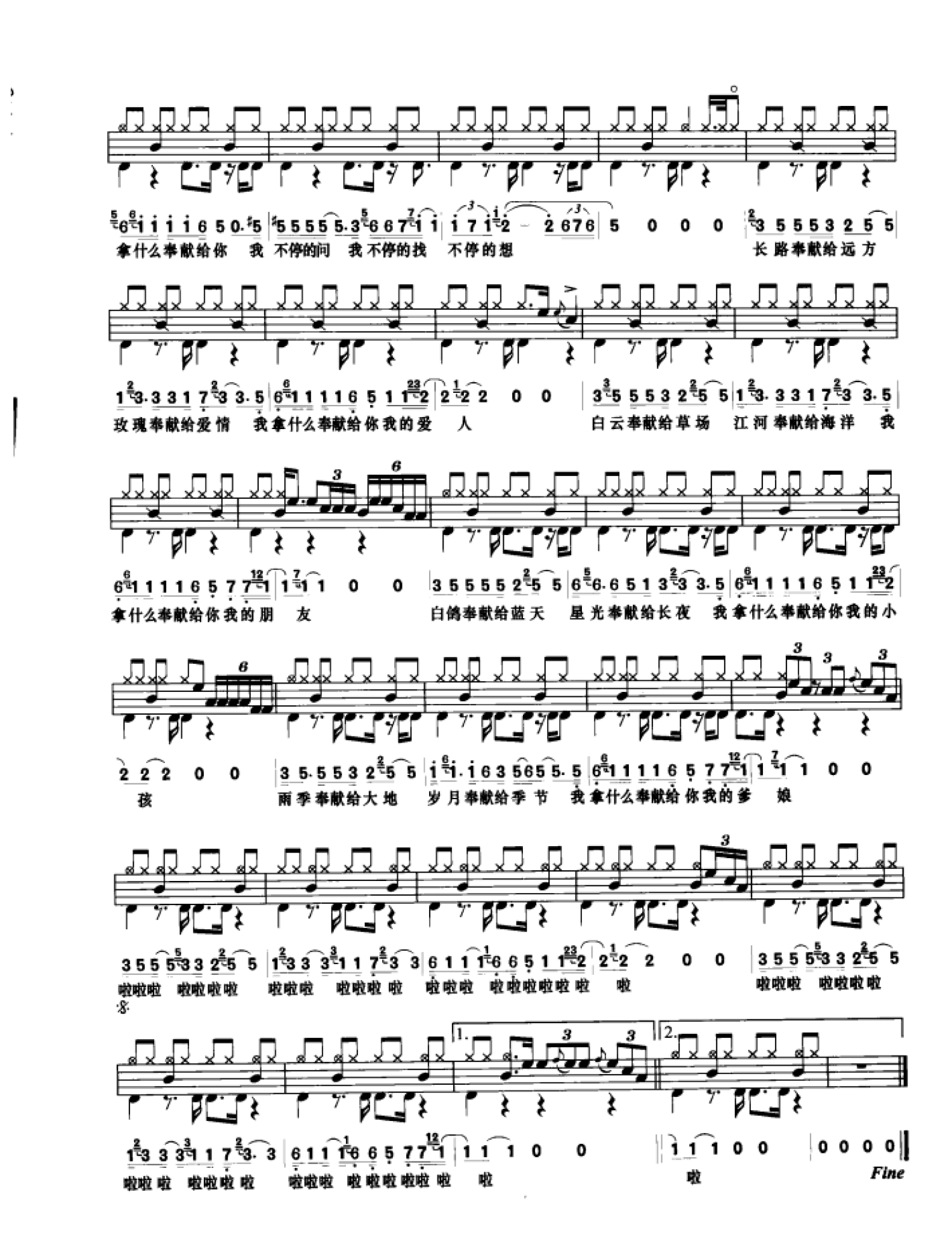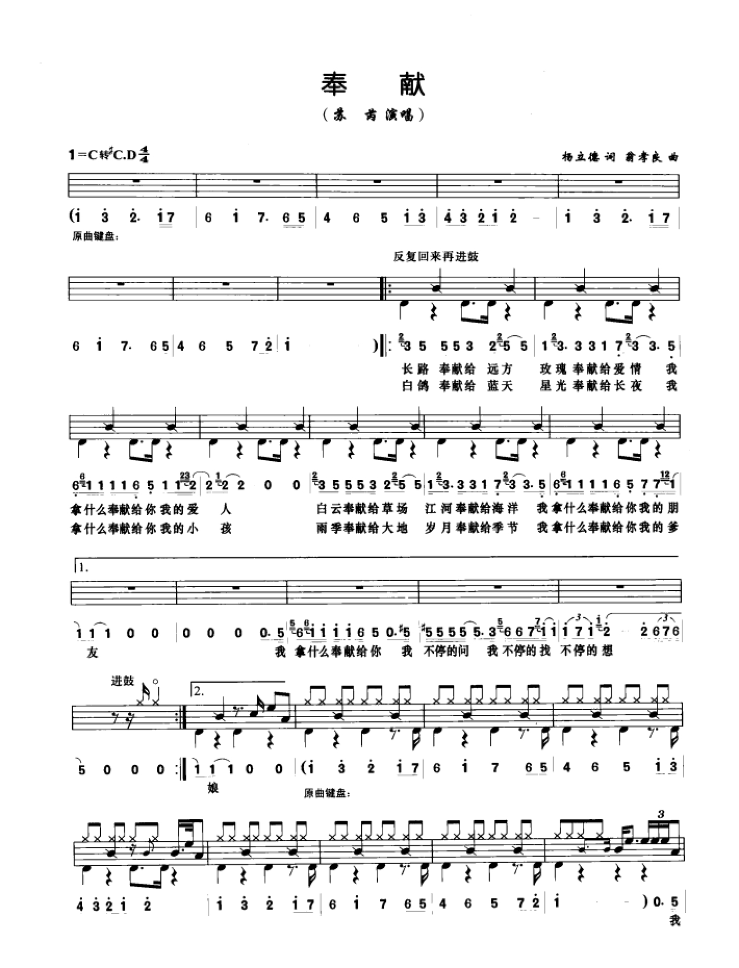 曲谱介绍: 奉献(架子鼓谱)-苏芮