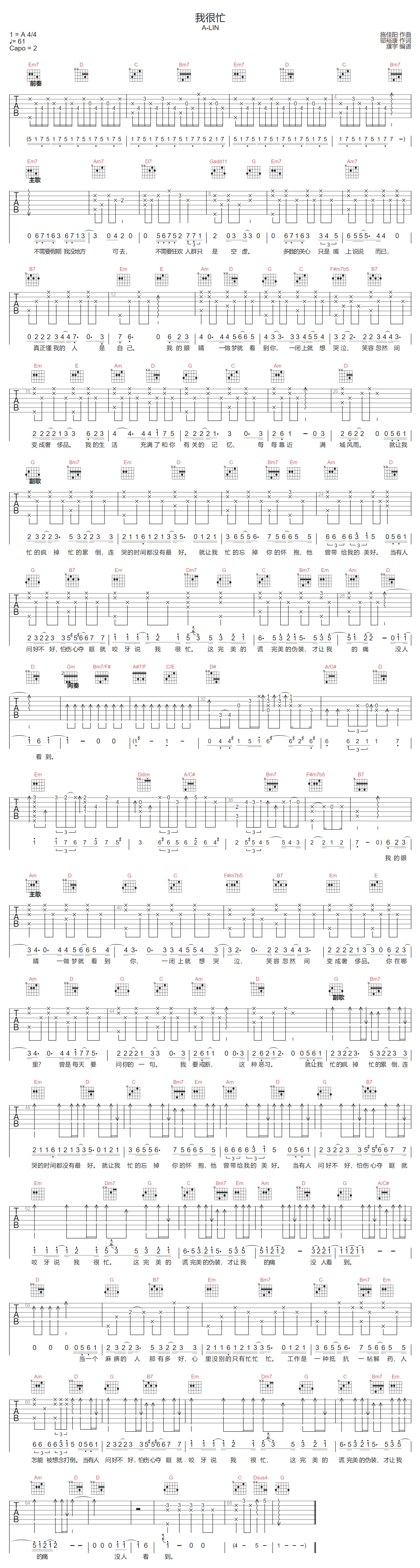 我很忙吉他谱 - 黄丽玲 - G调吉他弹唱谱 - 原版