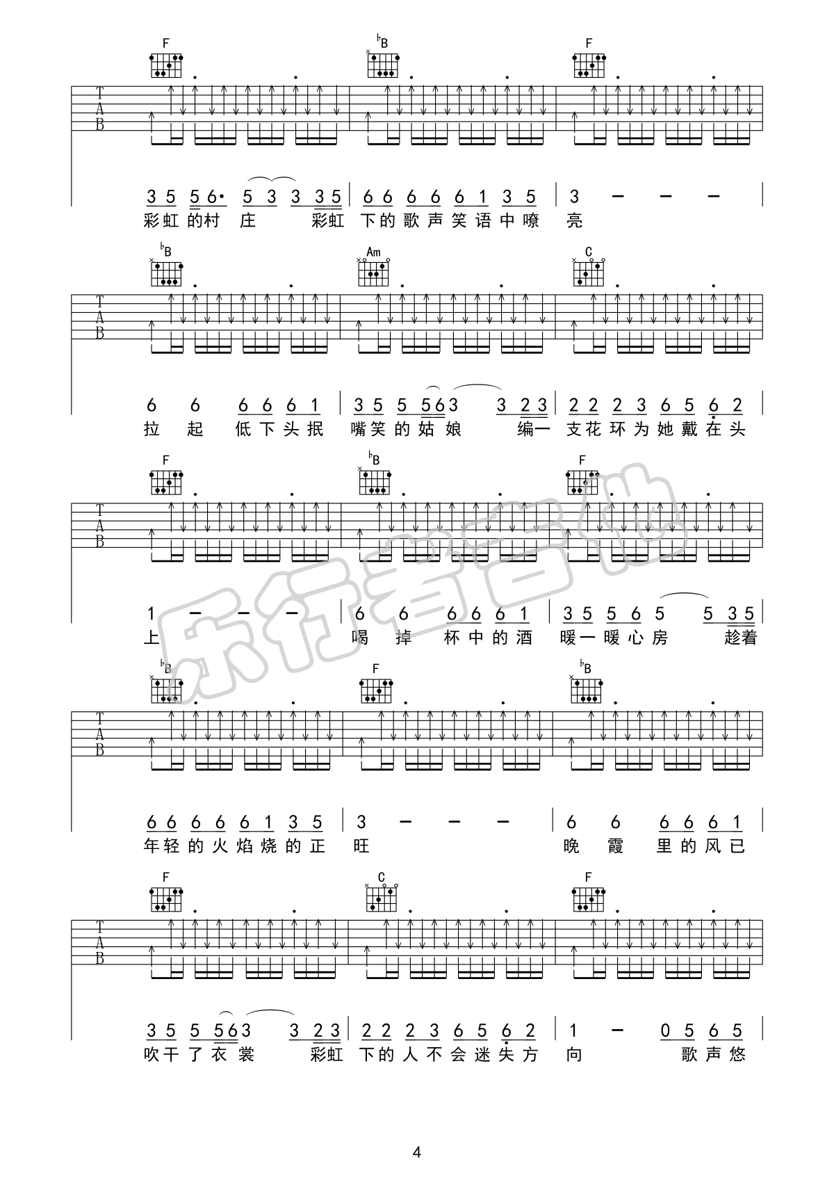 琴谱网为您精心推荐 彩虹下面 高清图谱
