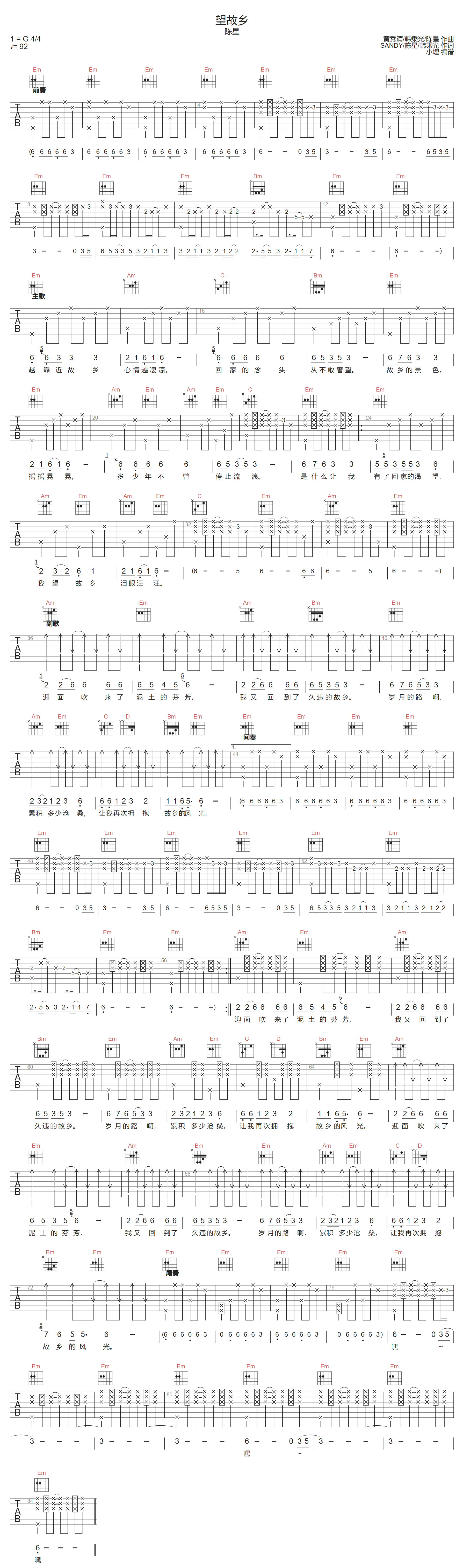 望故乡吉他谱 - 陈星 - G调吉他弹唱谱 - 原版