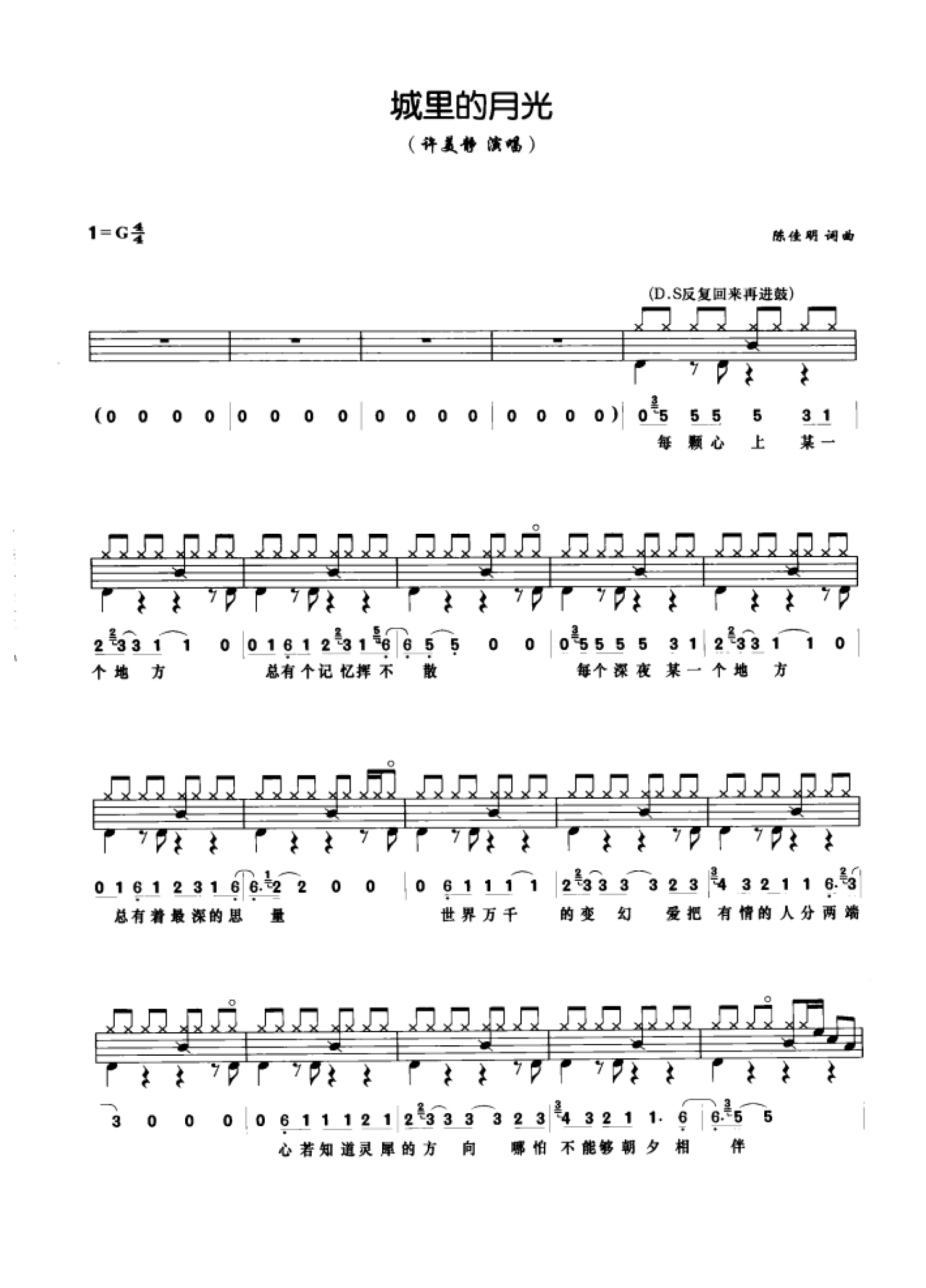 城里的月光鼓谱 - 许美静 - 架子鼓谱