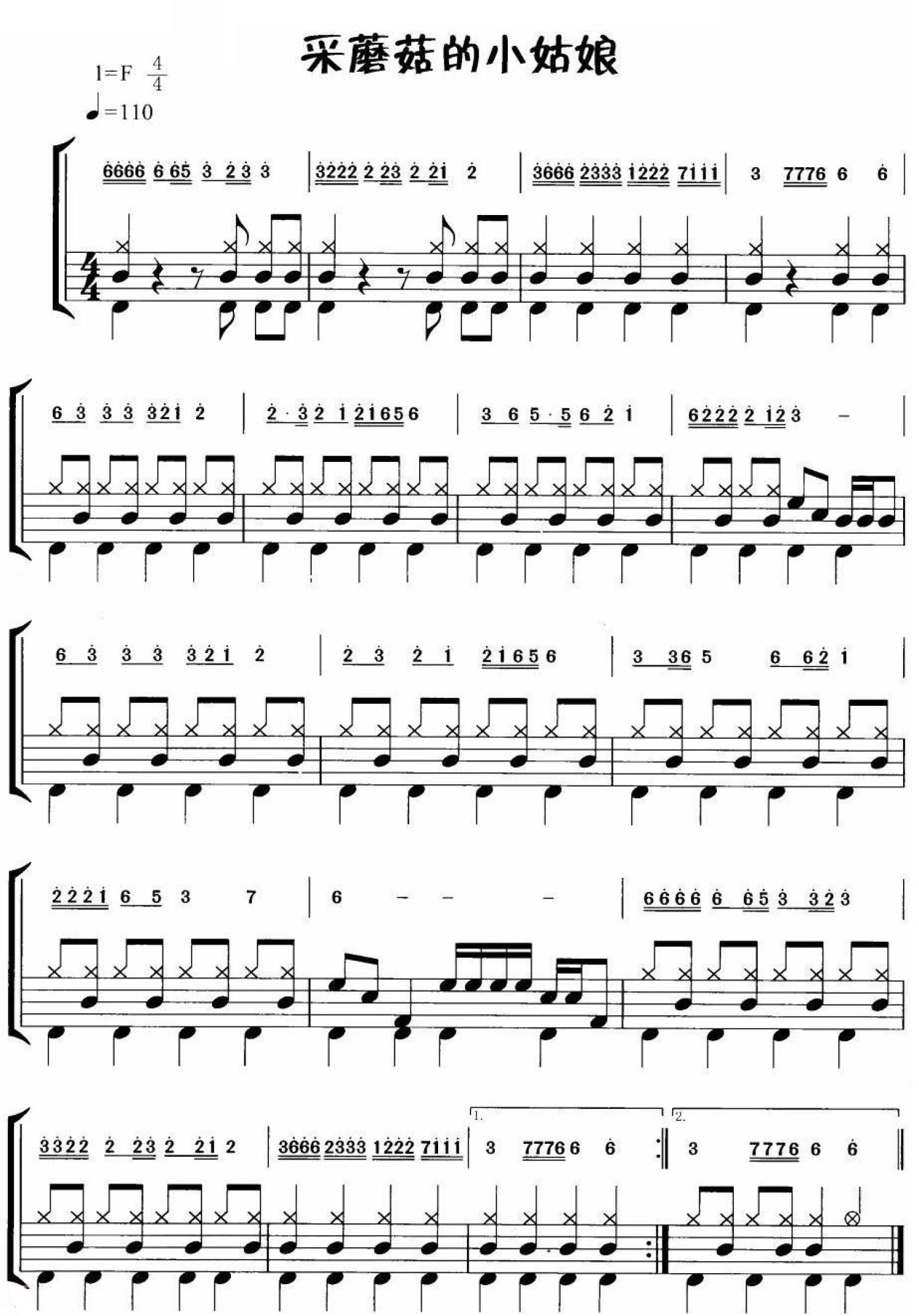 曲谱介绍: 采蘑菇的小姑娘(架子鼓谱)