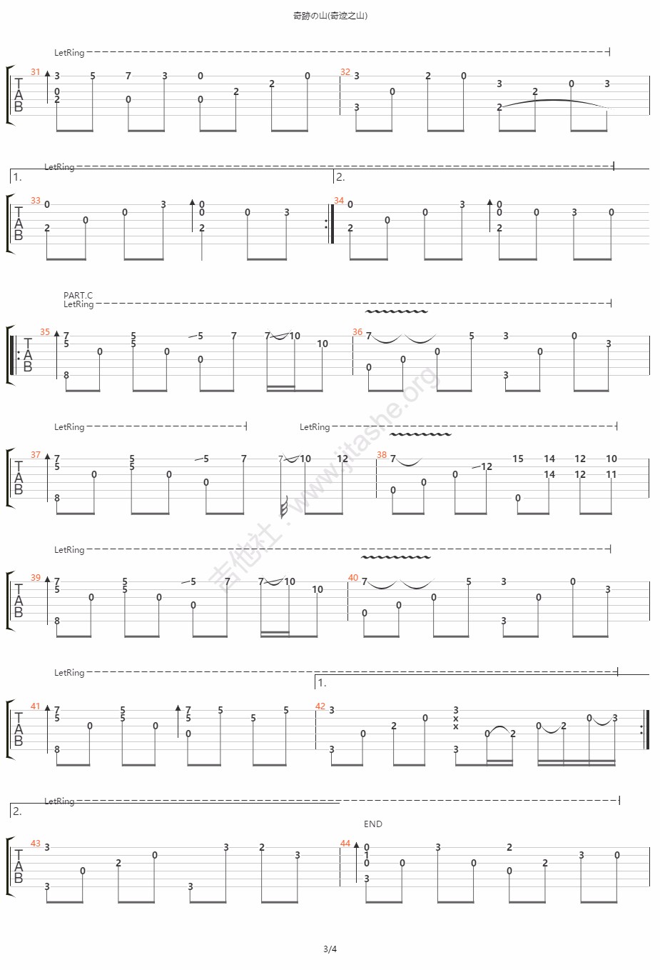 奇迹的山吉他谱 - 岸部真明 - 吉他独奏谱