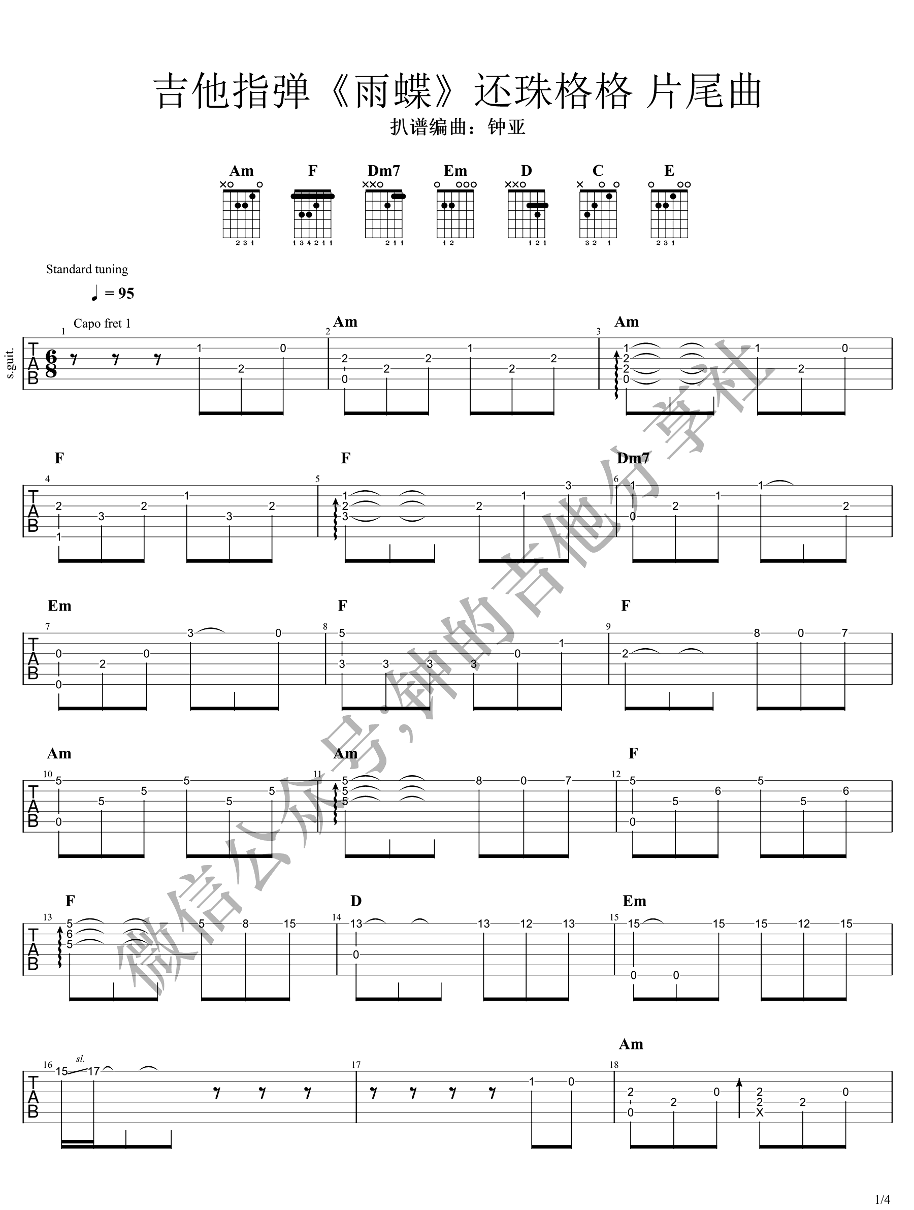 琴谱网为您精心推荐 雨蝶 高清图谱
