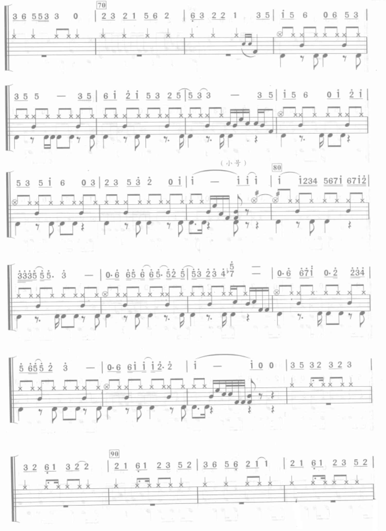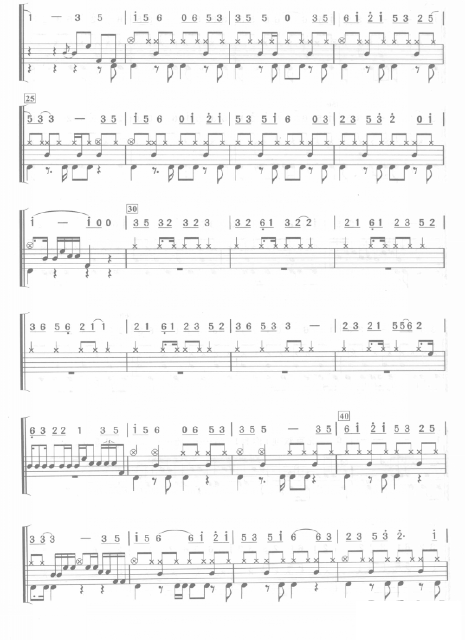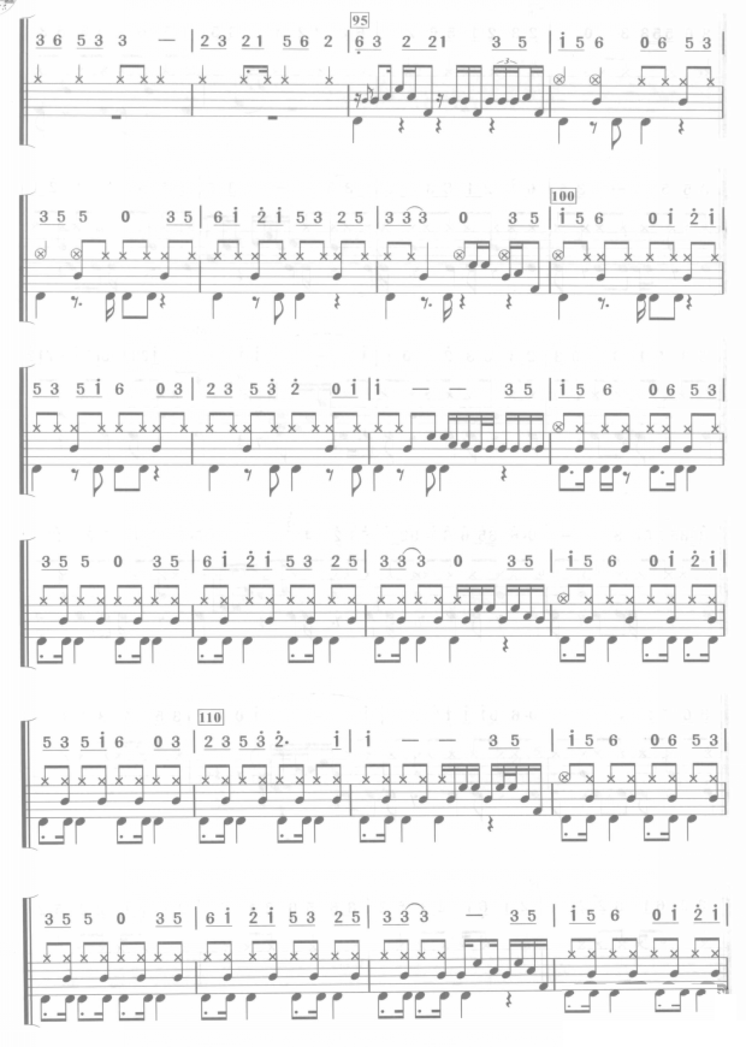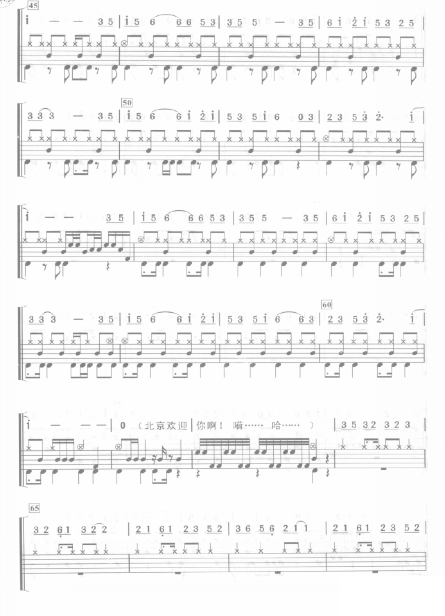 曲谱介绍: 北京欢迎你(架子鼓谱)
