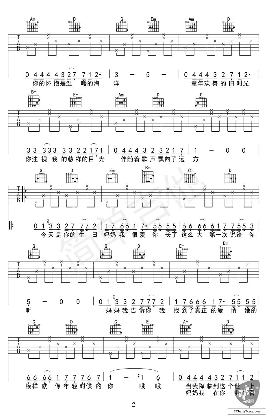 当前位置:琴谱网>吉他弹唱>今天是你的生日妈妈