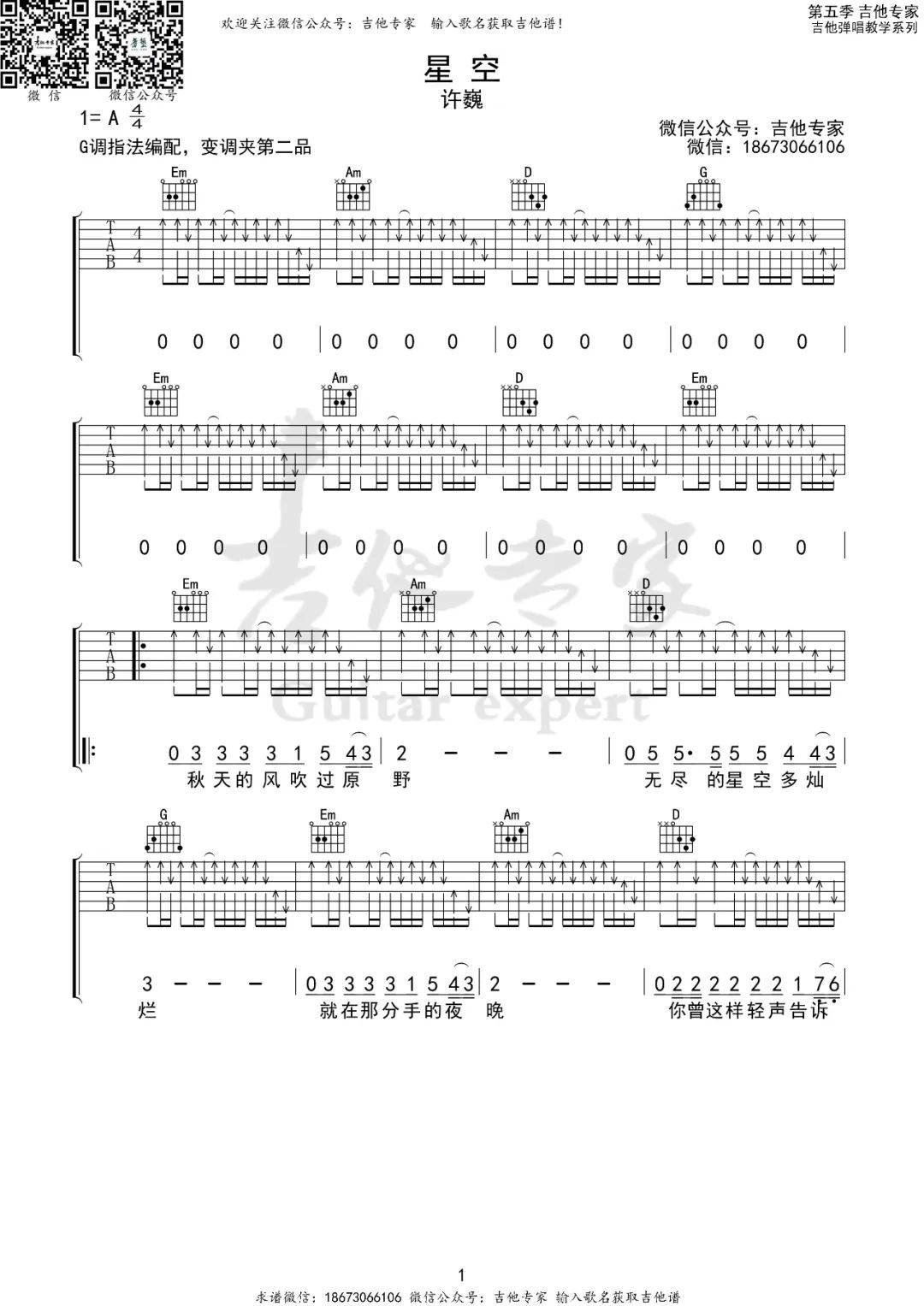 星空吉他谱 - 许巍 - G调吉他弹唱谱