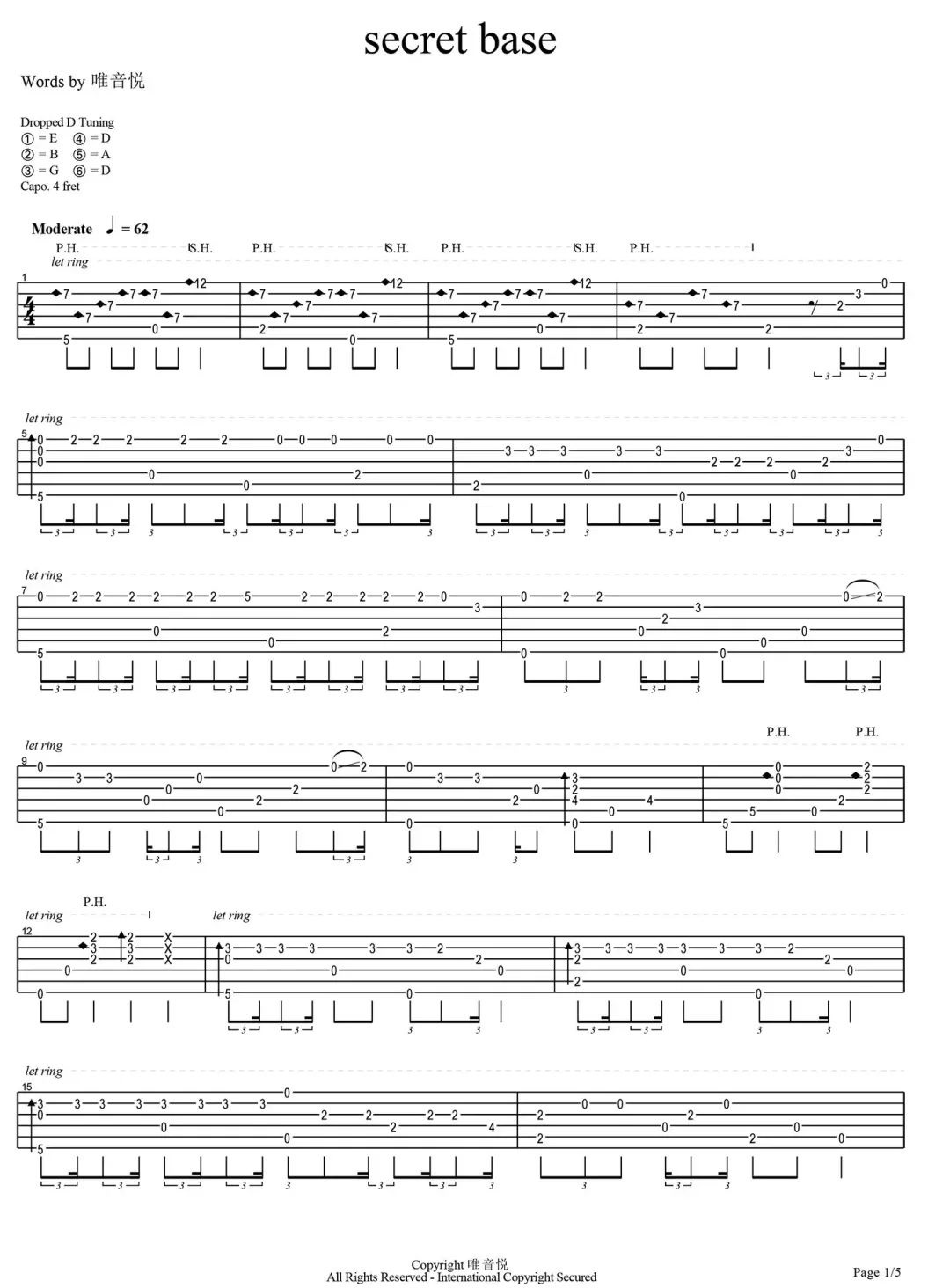 未闻花名吉他谱 - Secret - 吉他独奏谱