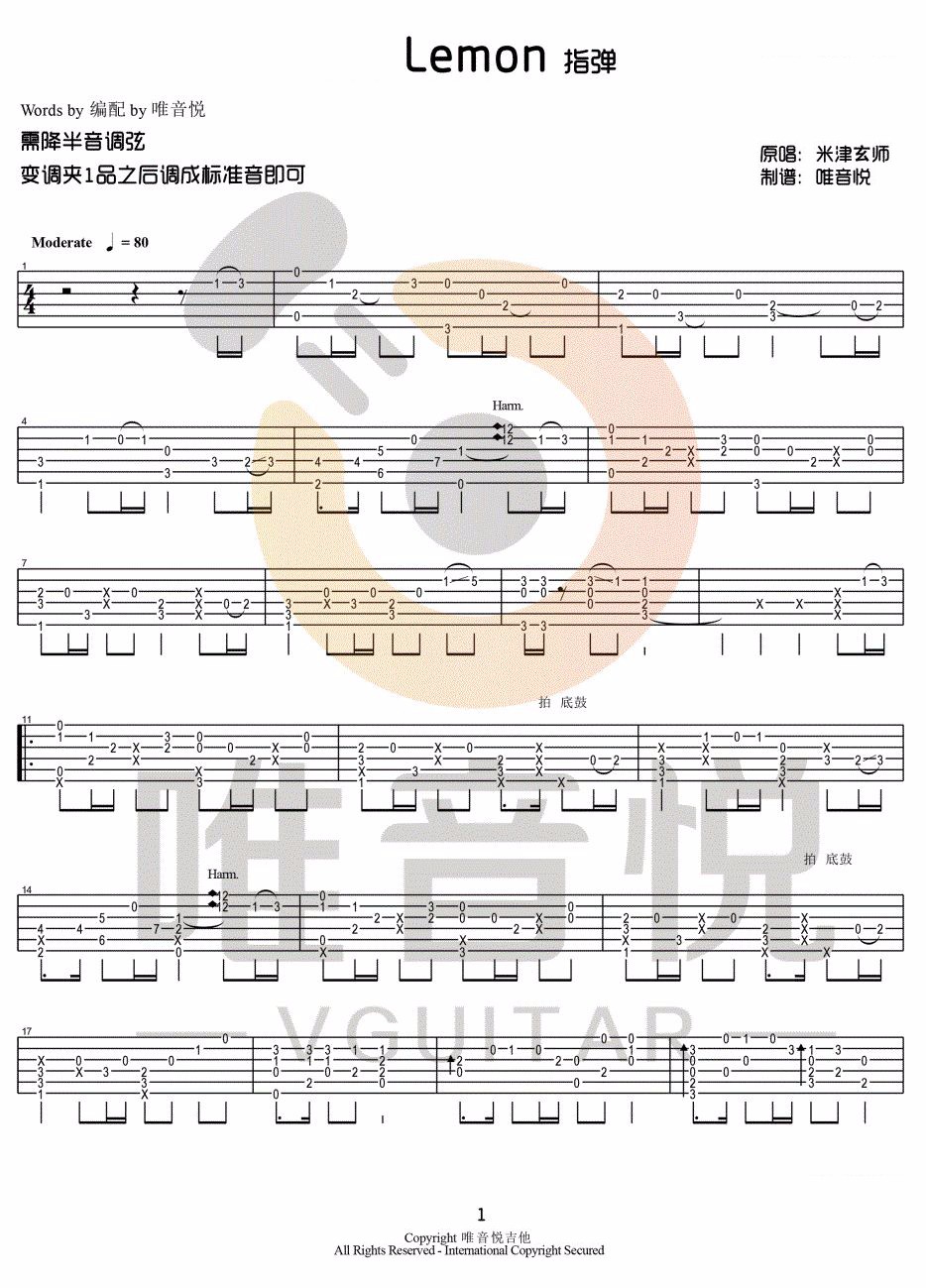 Lemon吉他谱 - 米津玄师 - 吉他独奏谱