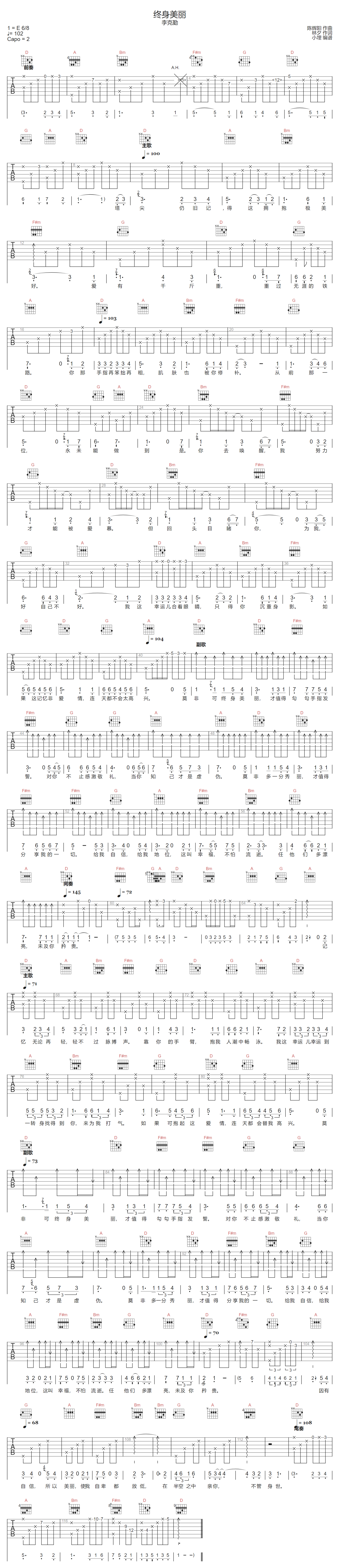 当前位置:琴谱网>吉他弹唱>终身美丽