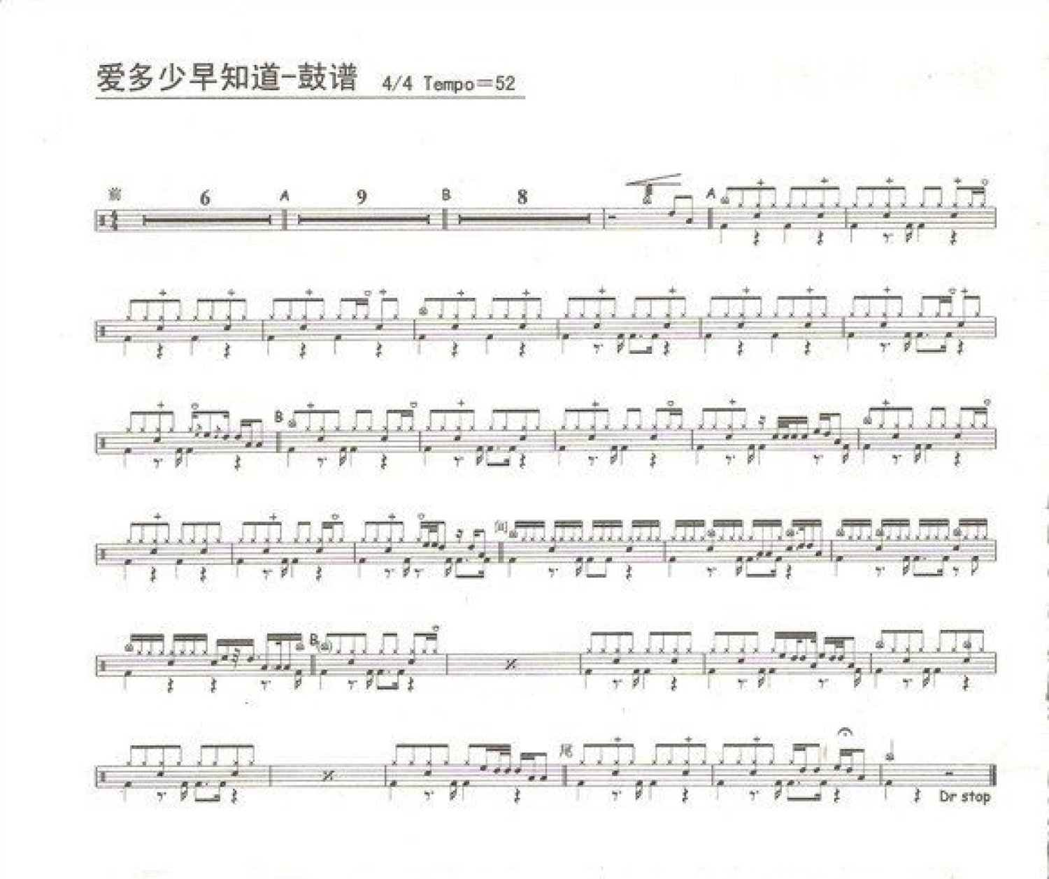 曲谱介绍: 爱多少早知道(架子鼓谱)