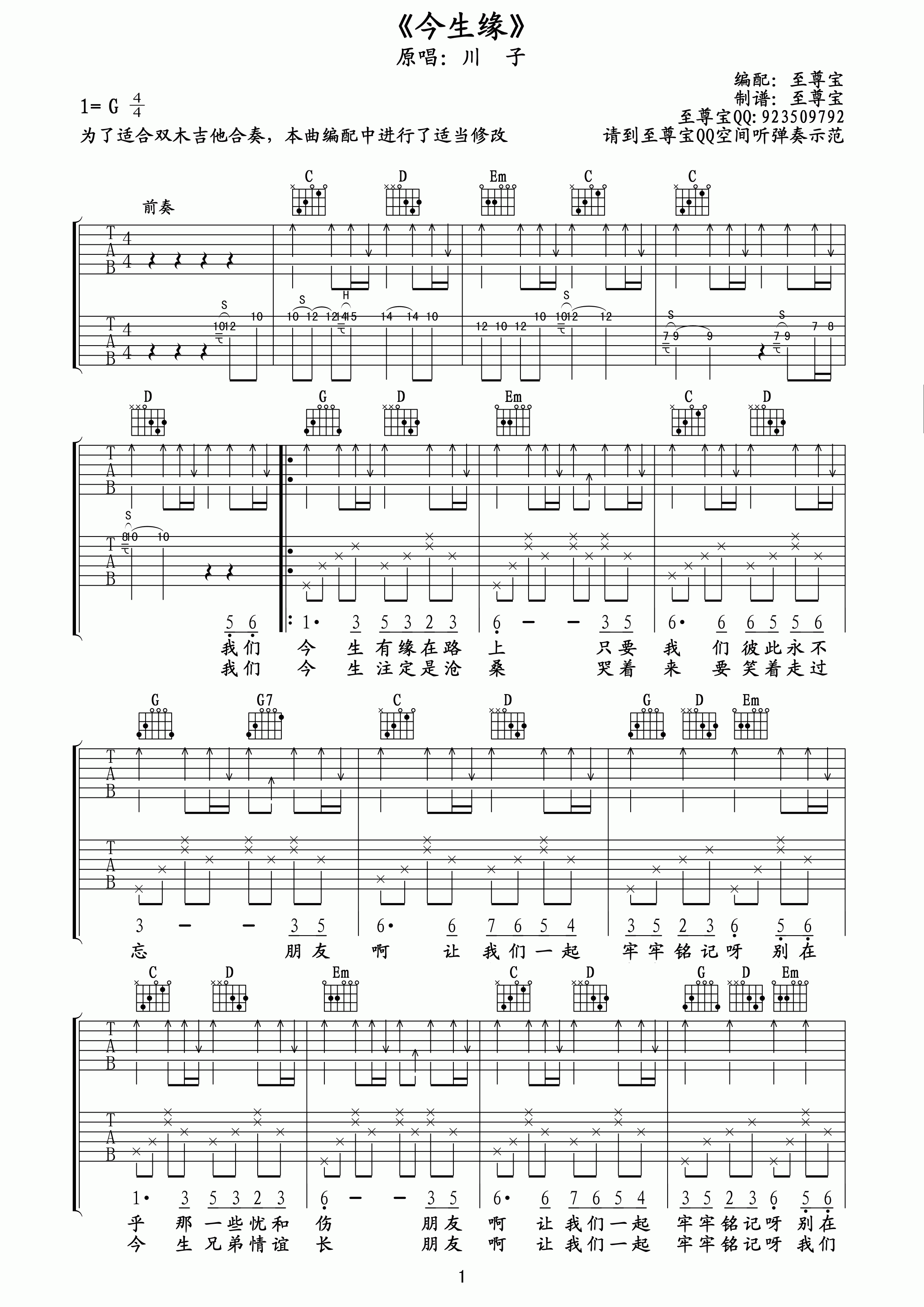 今生缘吉他谱 - 川子 - G调吉他弹唱谱 - 原版