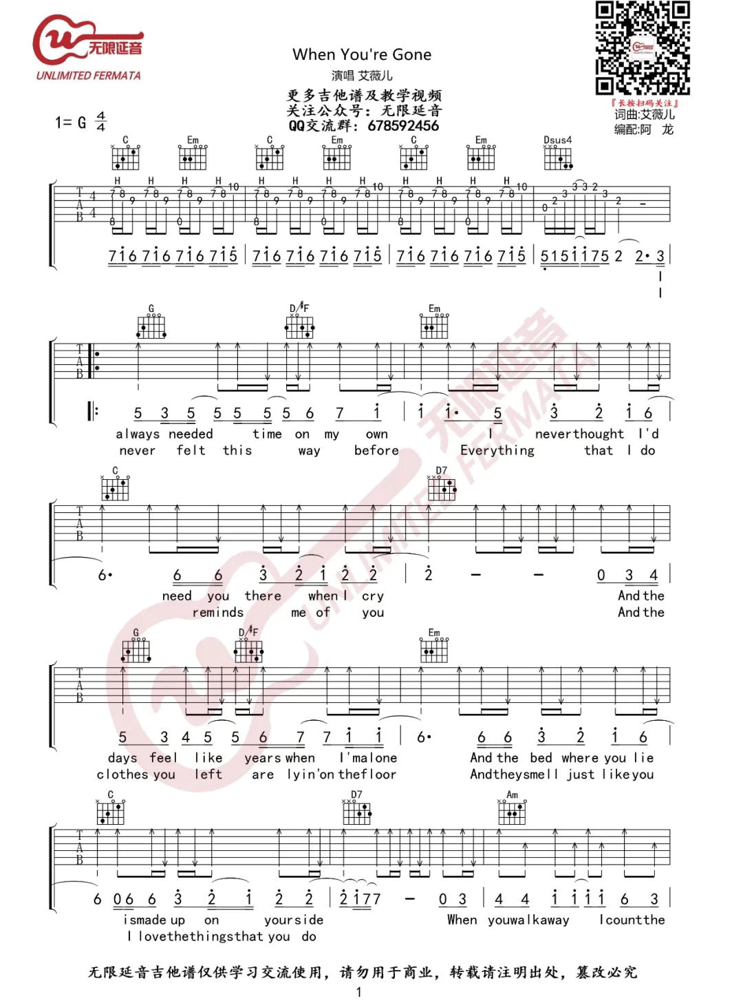 When You're Gone吉他谱 - When - G调吉他弹唱谱