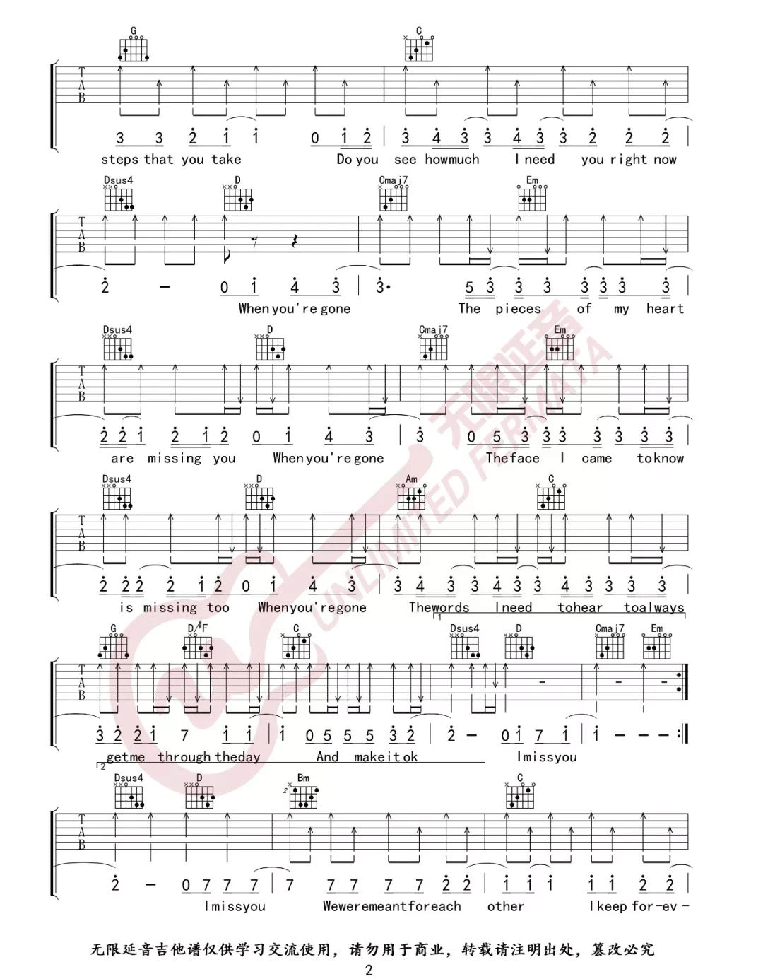 当前位置:琴谱网>吉他弹唱>When You're Gone