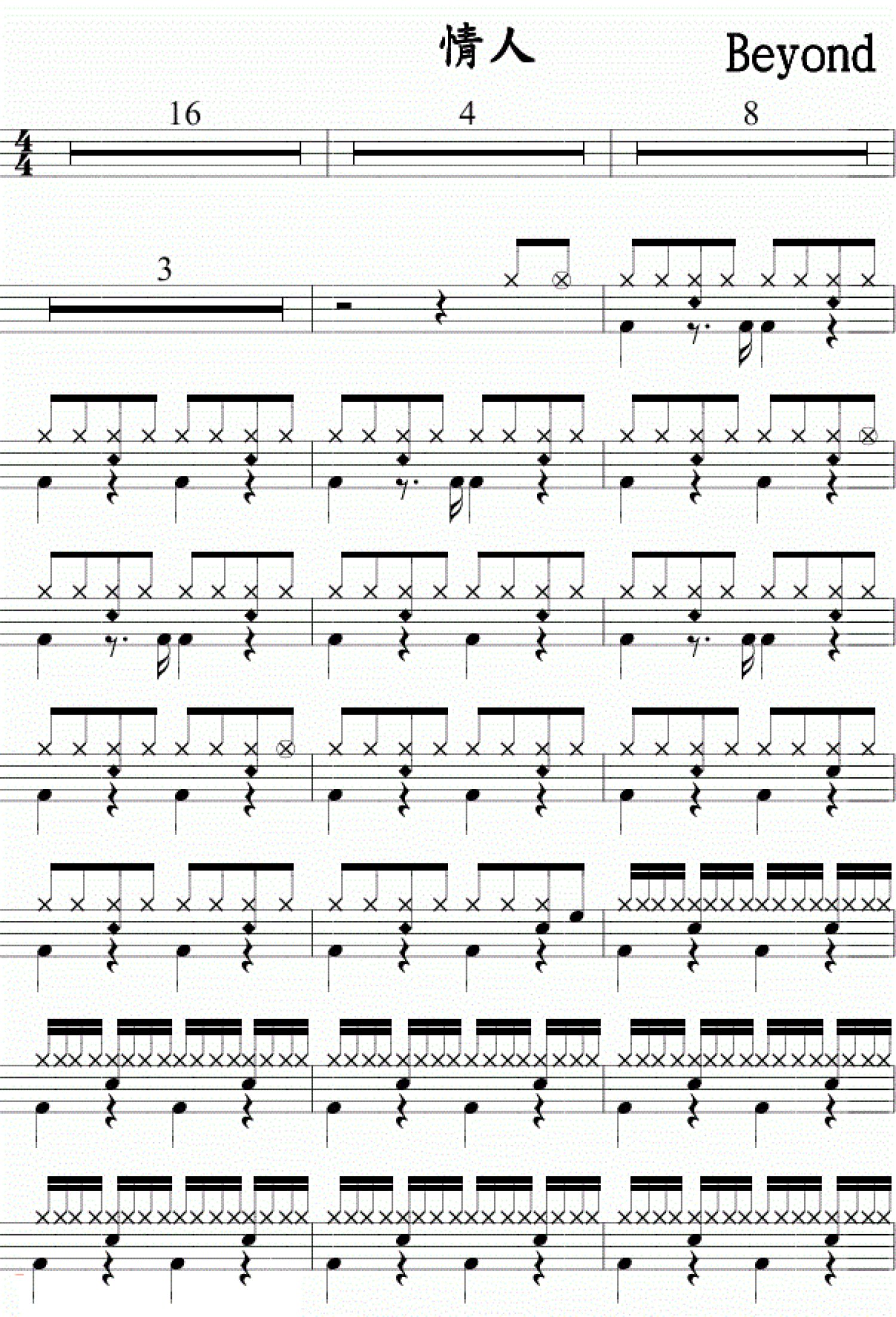 曲谱介绍: 情人(原版鼓谱)-beyond