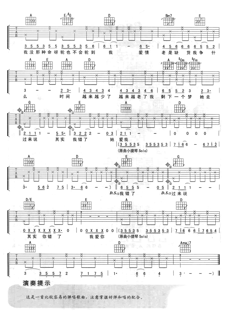 曲谱介绍: 陈小春演唱的一首歌曲,4/4拍的节奏,这首歌曲的原调为A调,这里曲谱采用了A调指法进行编配,演唱时可不夹变调夹,曲谱由琴谱网更新上传,曲谱来源于网络转载,编配制谱者暂不详。这首歌是陈小春最出名的歌曲之一。闯荡歌坛十载,陈小春自己也曾表示,他喜欢的且最能表心声的,就是这首《没那种命》。